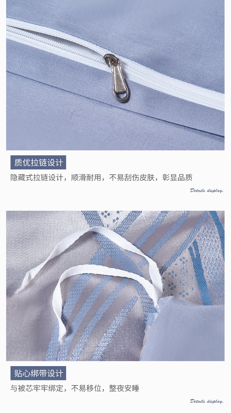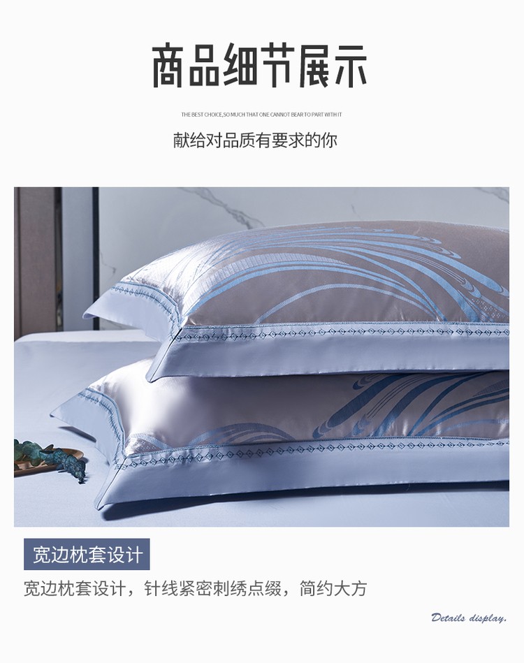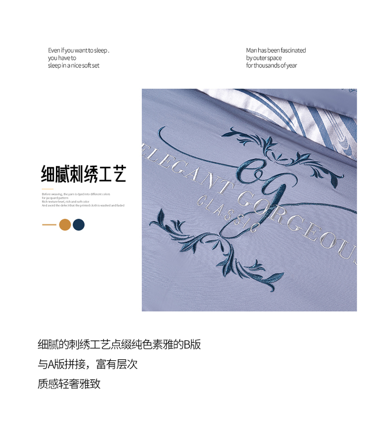 柔觉家纺 天丝刺绣贡缎提花全棉四件套,柔梦-海蓝