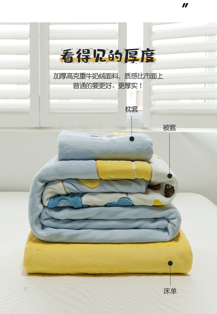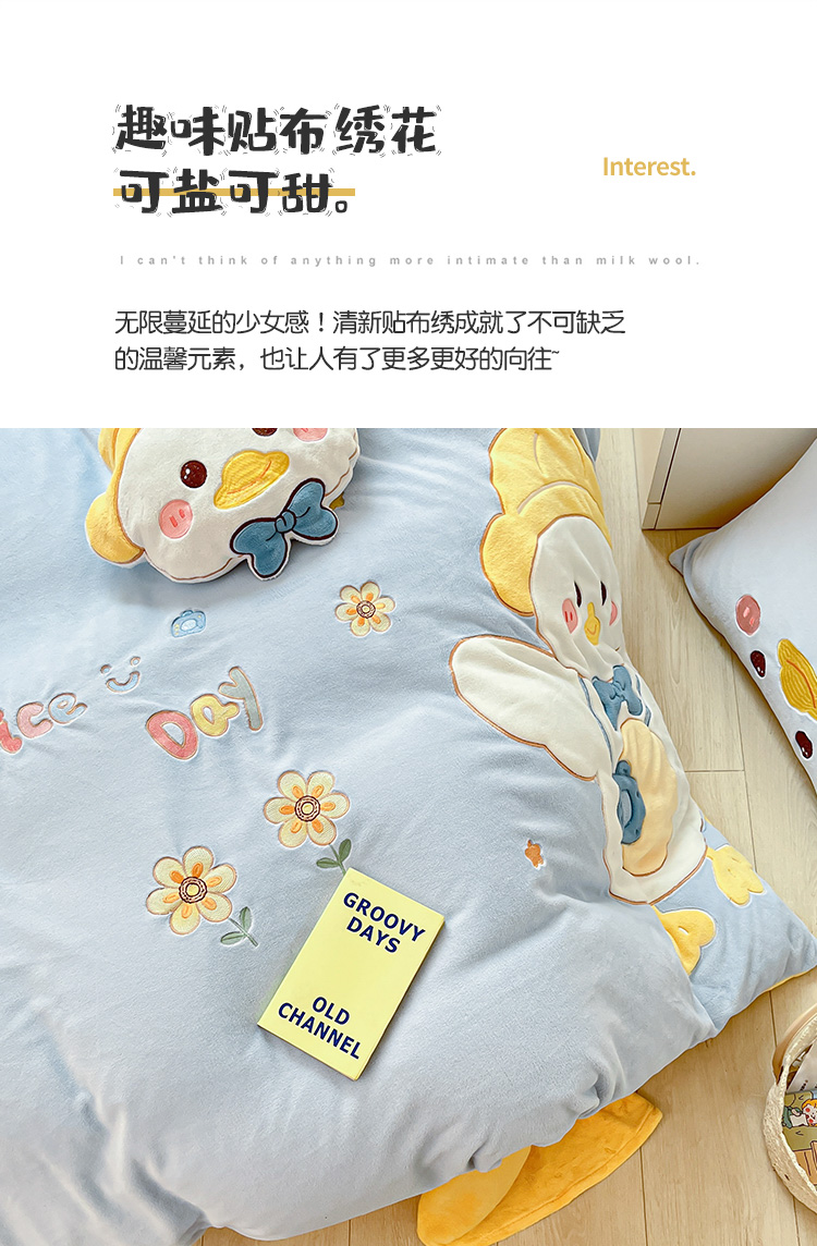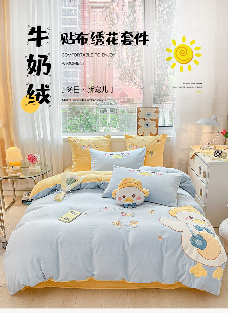 当前位置: 91家纺网 > 商品网购 > 床品套件 > 四件套 > 牛奶绒四件套 > 绒梦里230克加厚新款牛奶绒贴布绣花四件套冬季儿童卡通三件套保暖套件