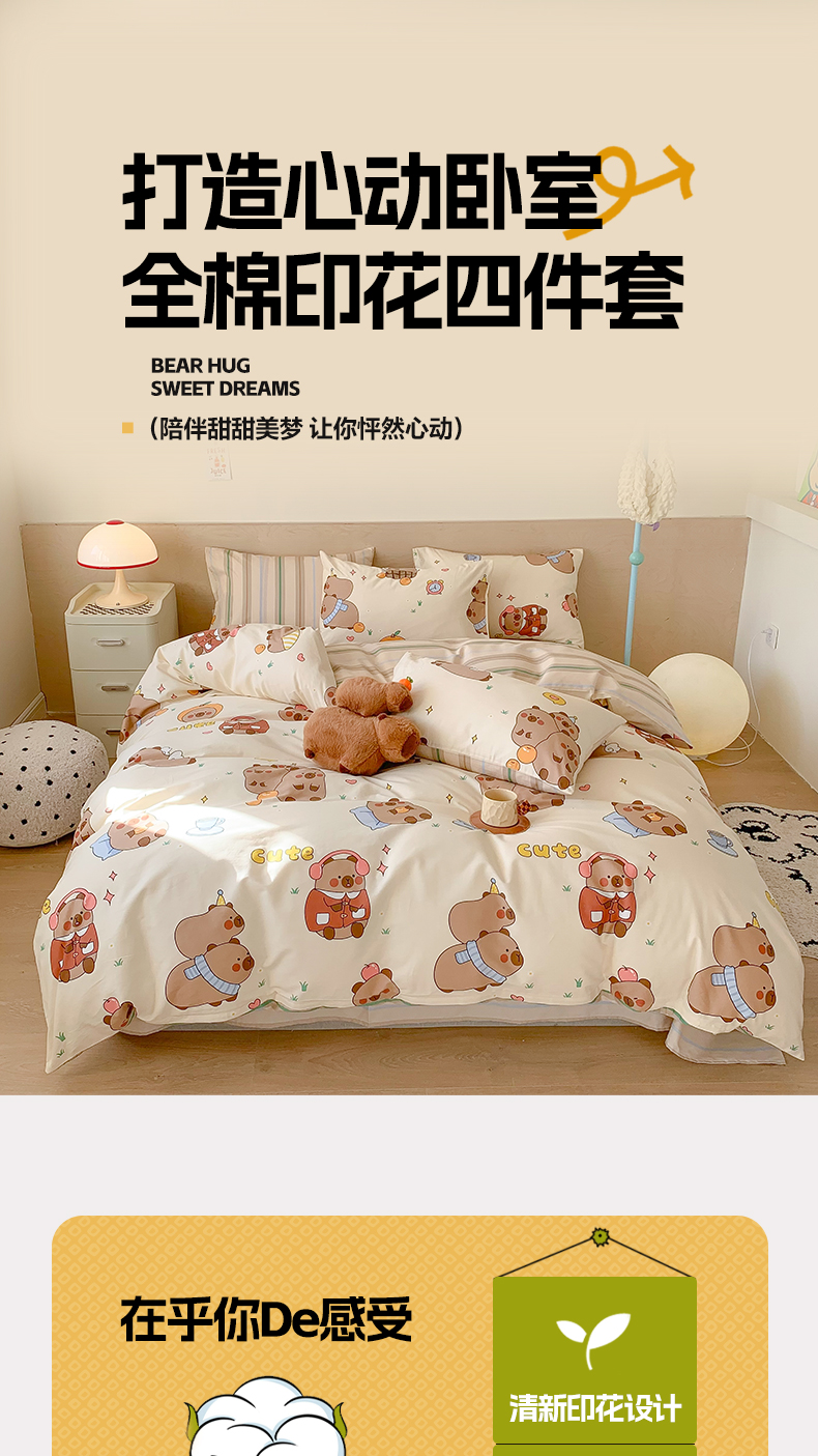 (总)澳萝拉 2023新款全棉印花四件套会员减5元,嗨迪诺,可爱多多,可可朵朵,兔兔莓莓,熊熊的面包,安绘里,豹纹棕熊,草莓花园,粉心小熊,简单生活,快乐星球,蓝心小熊,时尚熊,贪吃鲨,甜心花园,甜心小兔,童话镇,元气小熊,薄荷奶绿,黑糖乳酪,花语仙踪,秘密花园,暖时光,童趣园,野餐森林,元气花花,元气橘,云上花园,呆萌狗,古灵精怪,乖乖兔,好事发生,花朵兔兔,花园漫步,焦糖布丁,爵士汪,奇幻星球,糖果兔兔,甜甜圈,小确幸,小甜心,心动甜心,星际兔,游乐园,云朵兔兔,芝芝汪