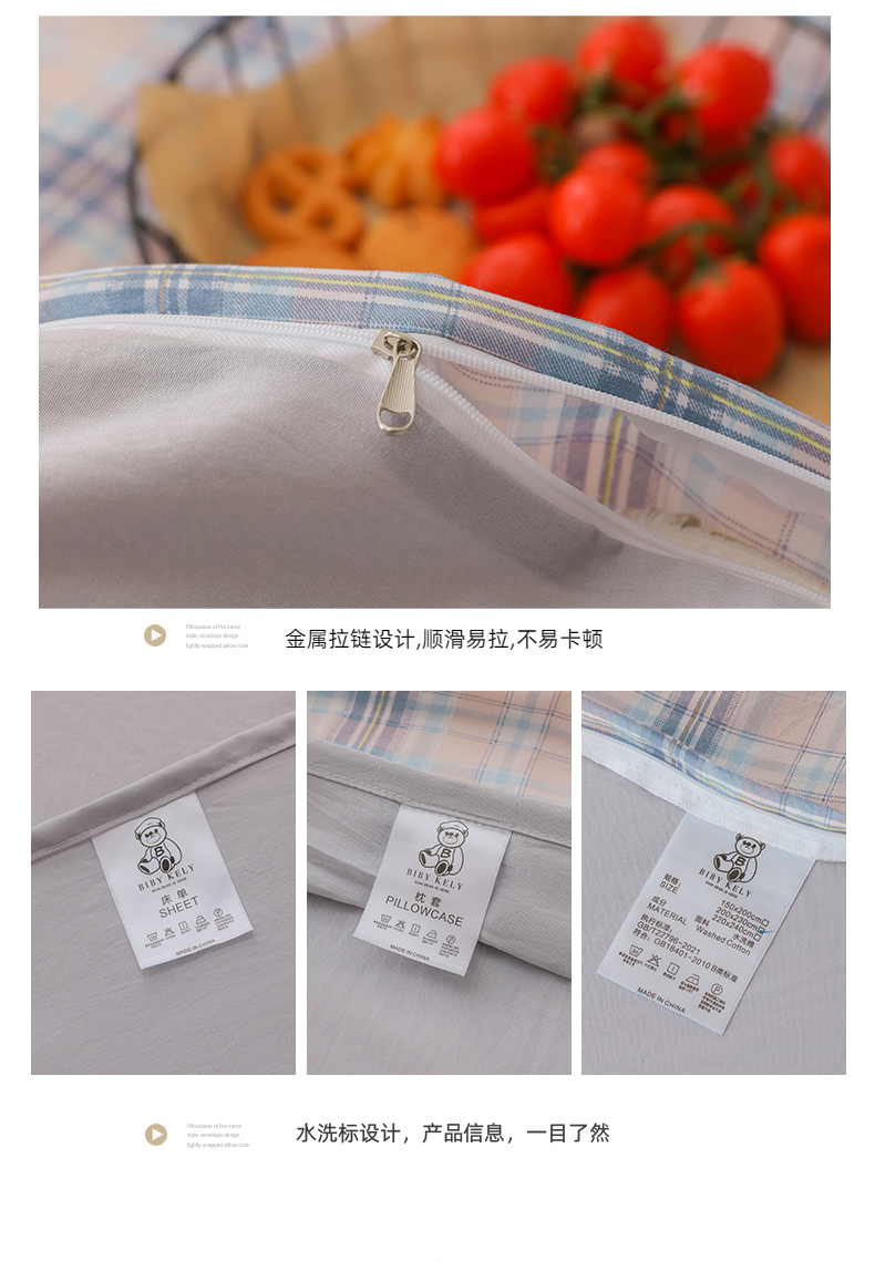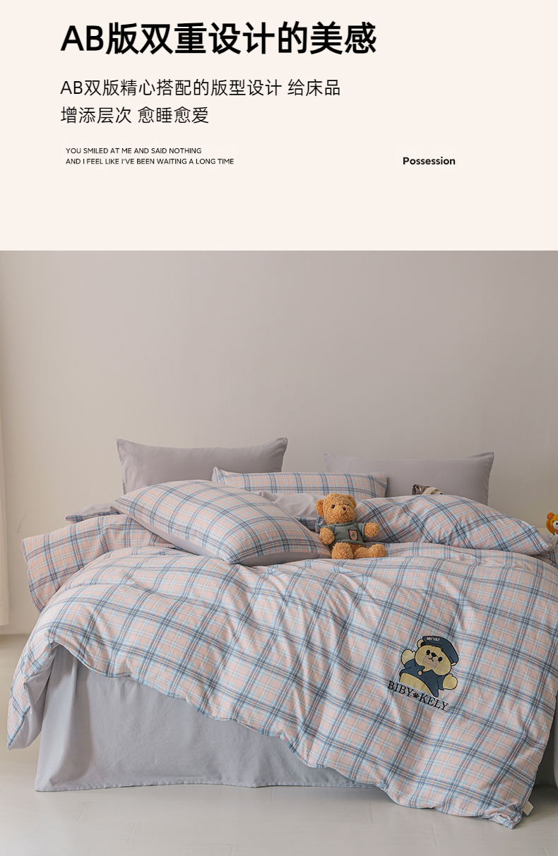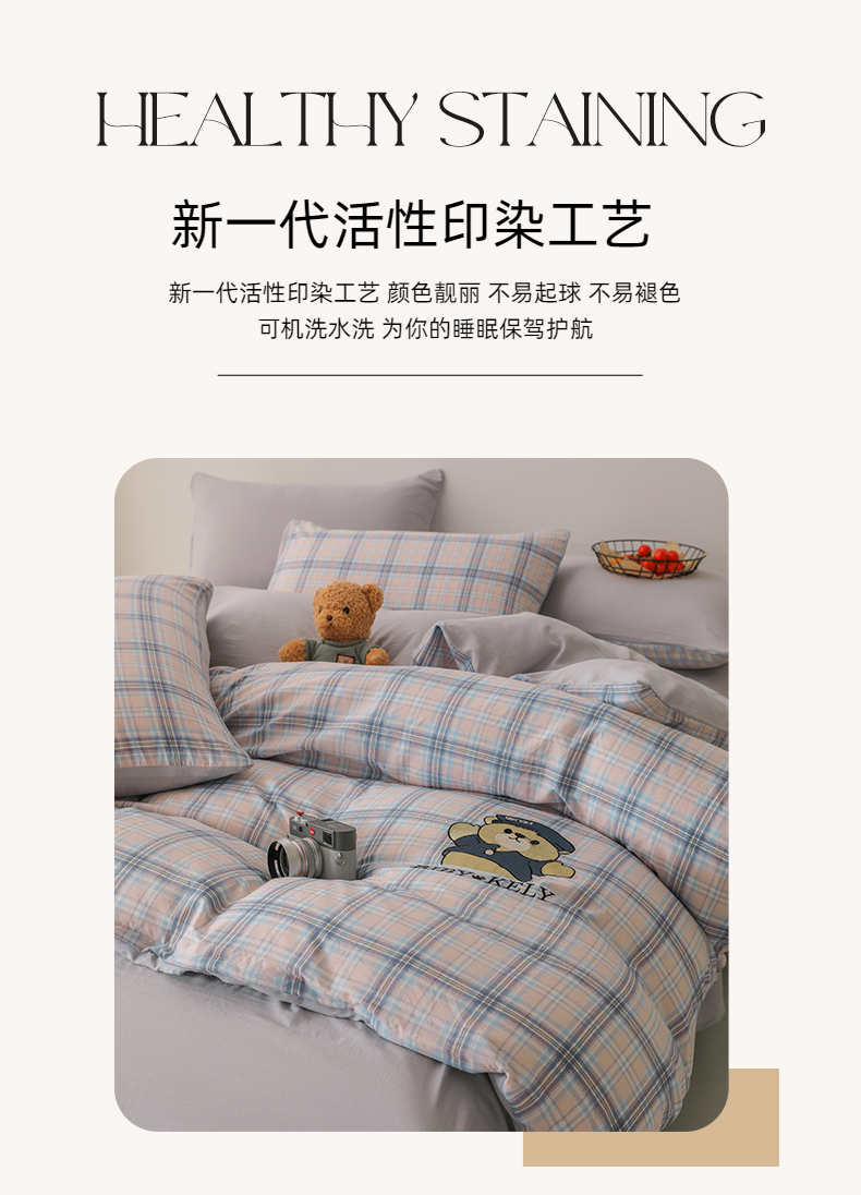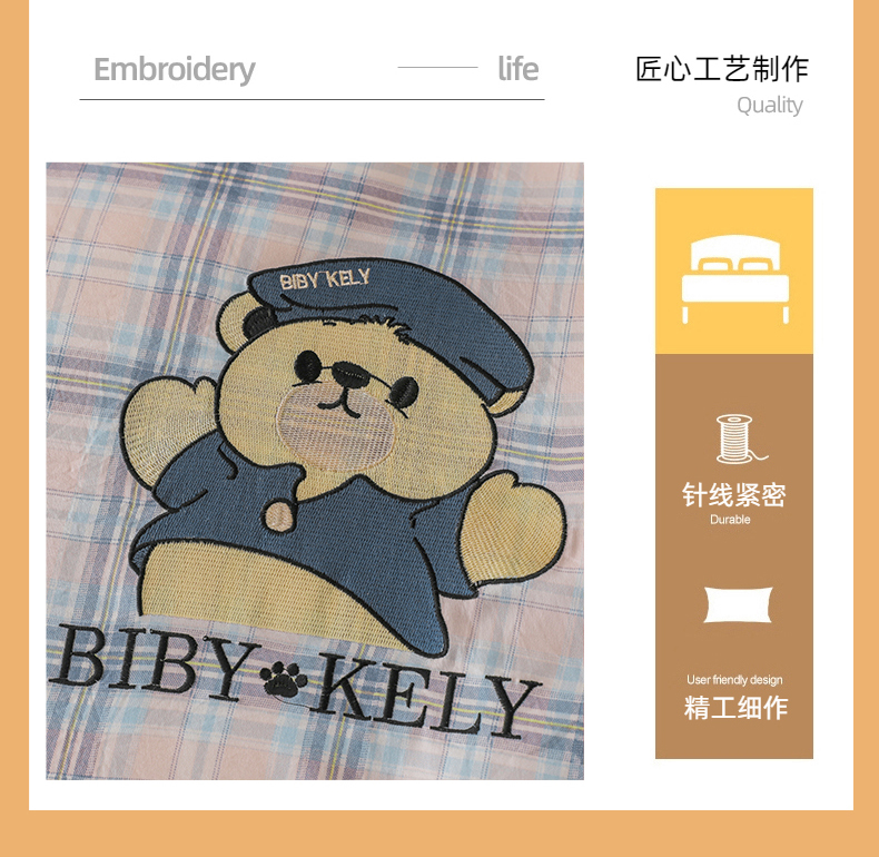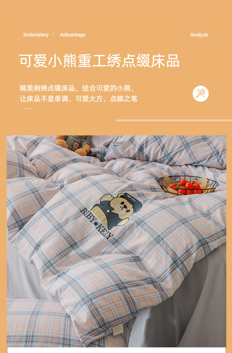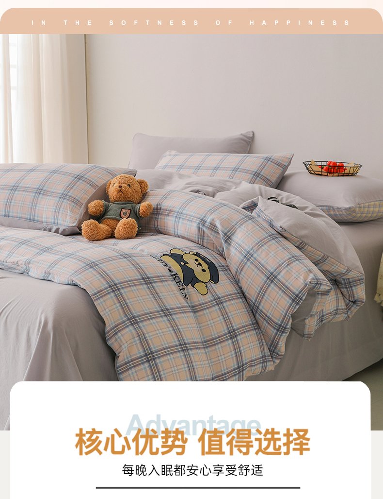 商品名称:潮邦创意家居 2025新款春夏亲肤水洗棉刺绣四件套-贝恩熊 贝恩熊-映象紫