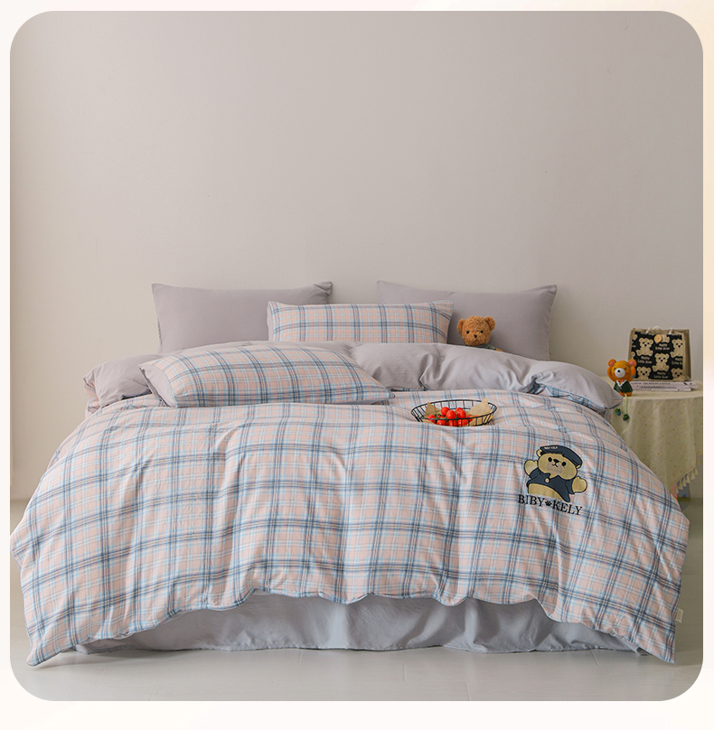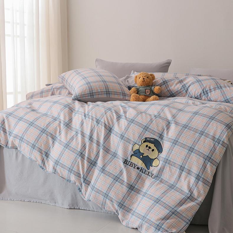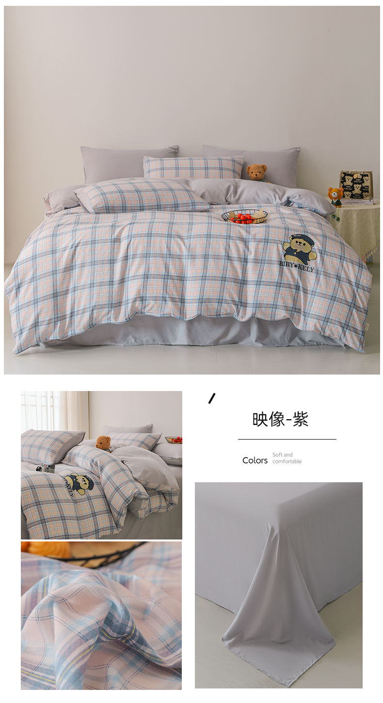 潮邦创意家居 2025新款春夏亲肤水洗棉刺绣四件套-贝恩熊 贝恩熊-映象紫