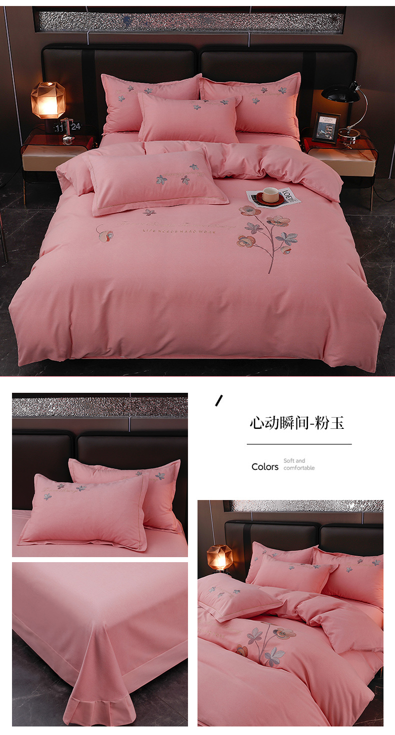 润淳家居 2025新款全棉磨毛刺绣四件套 心动瞬间 粉玉