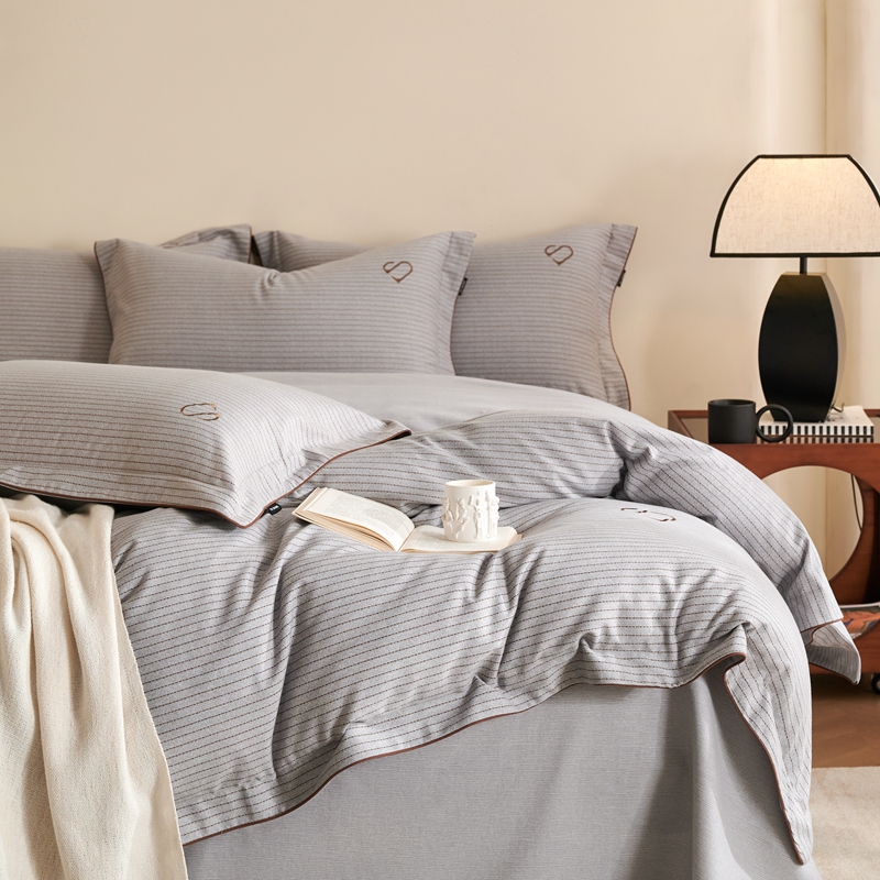 总榻尚家居 2023新款格瑞斯系列100贡缎长绒棉四件套工艺款四件套,格瑞斯紫,格瑞斯白,格瑞斯灰,格瑞斯蓝