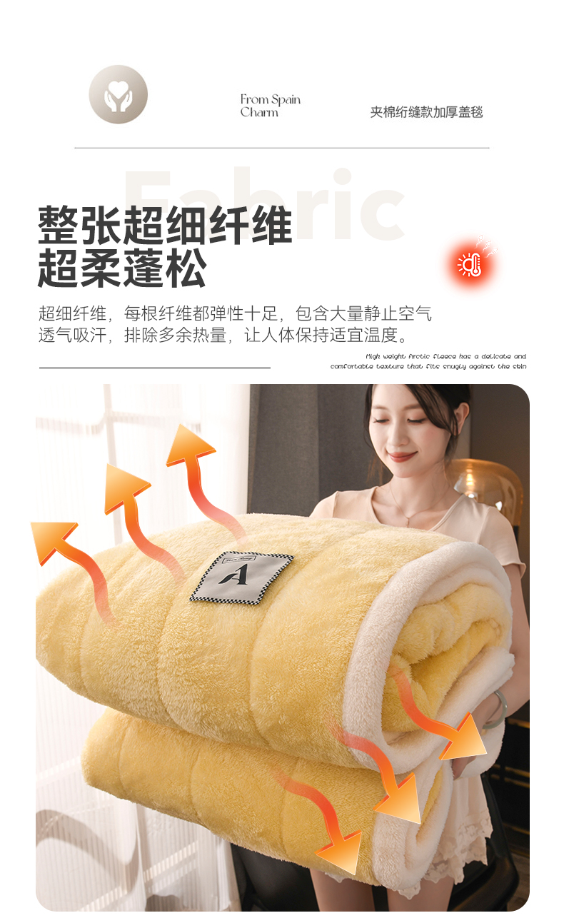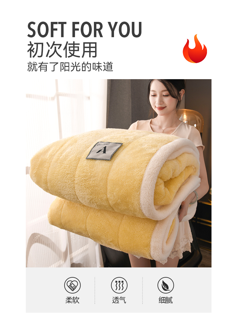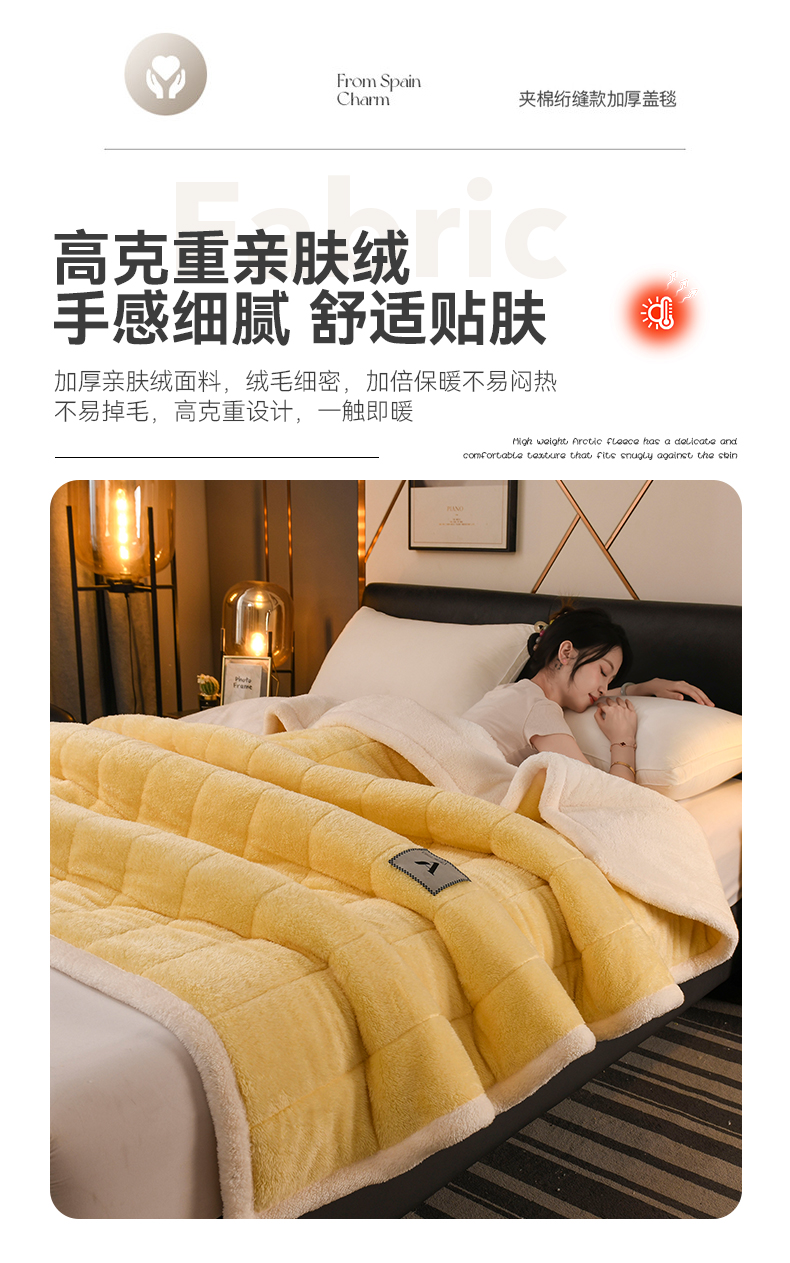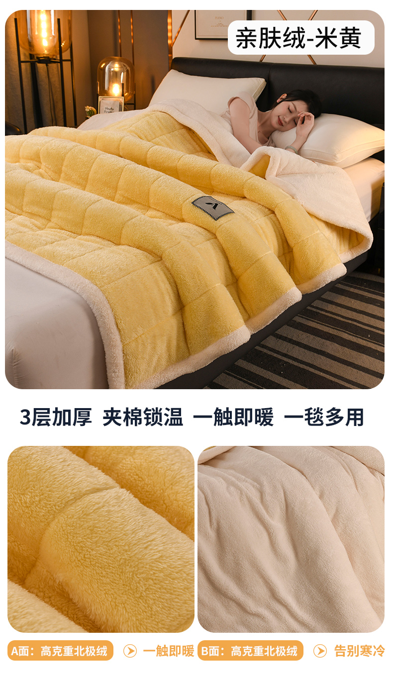 商品名称:恋绒家纺 2025新款加厚三层毛毯被牛奶绒复合毯子夹棉盖毯午睡毯子法莱绒毛毯 (亲肤绒-)-米黄