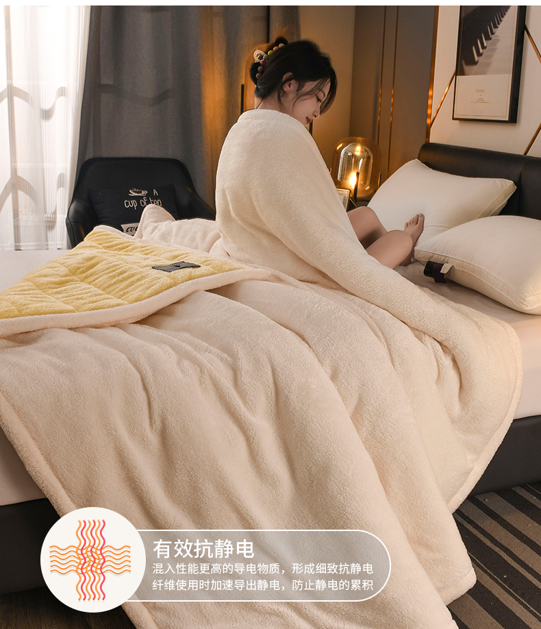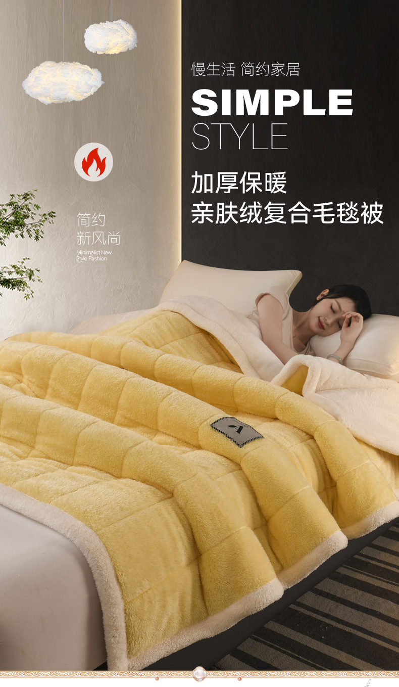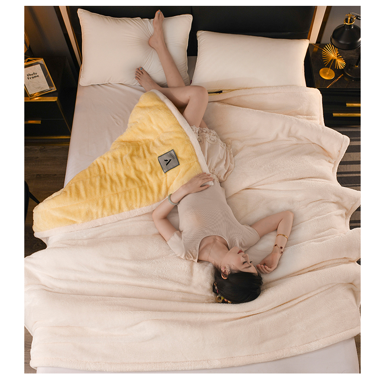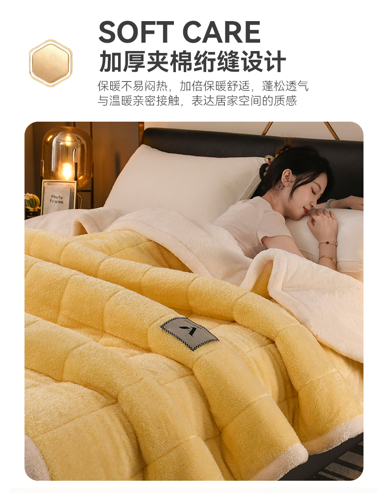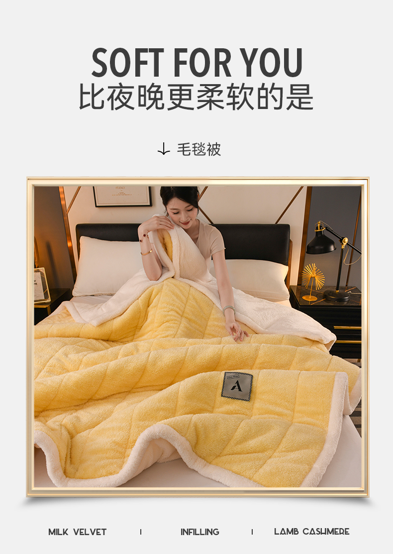 恋绒家纺 2025新款加厚三层毛毯被牛奶绒复合毯子夹棉盖毯午睡毯子法莱绒毛毯 (亲肤绒-)-米黄