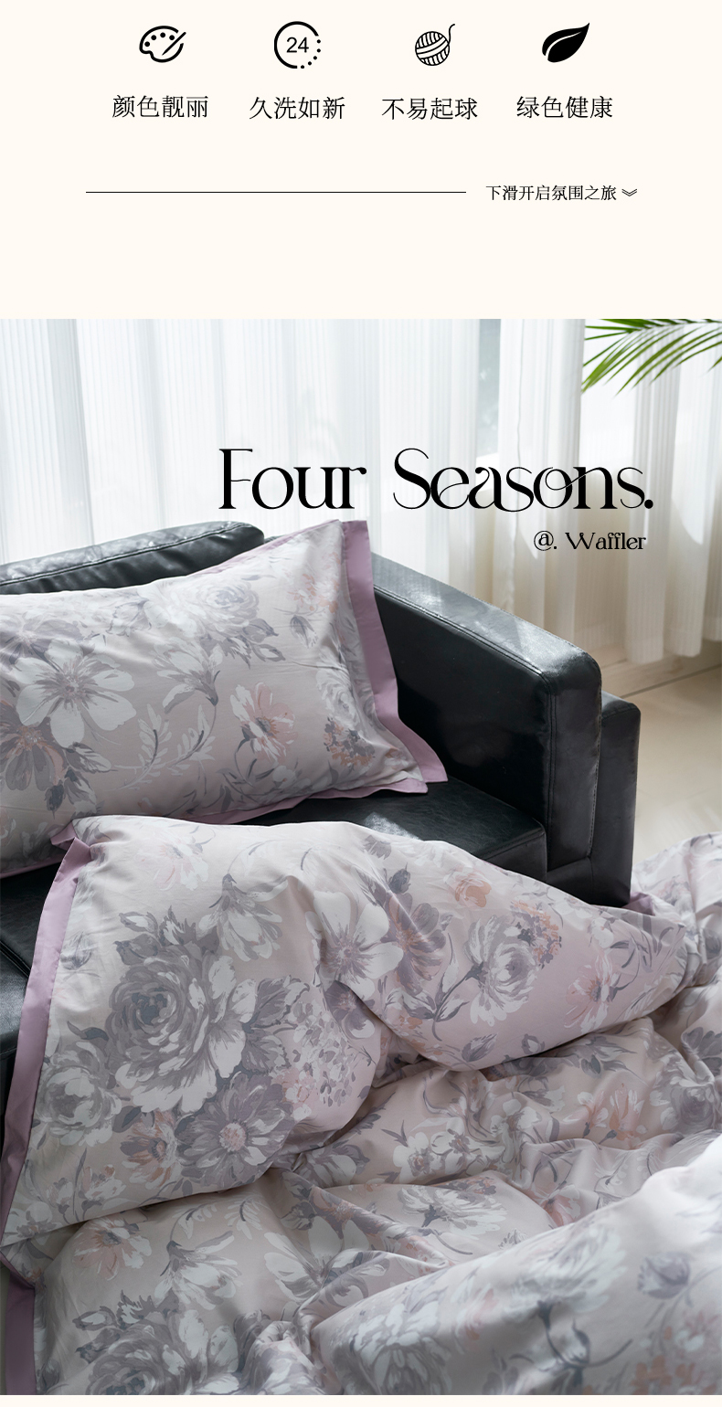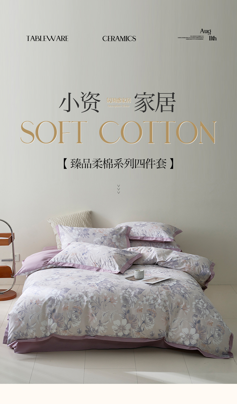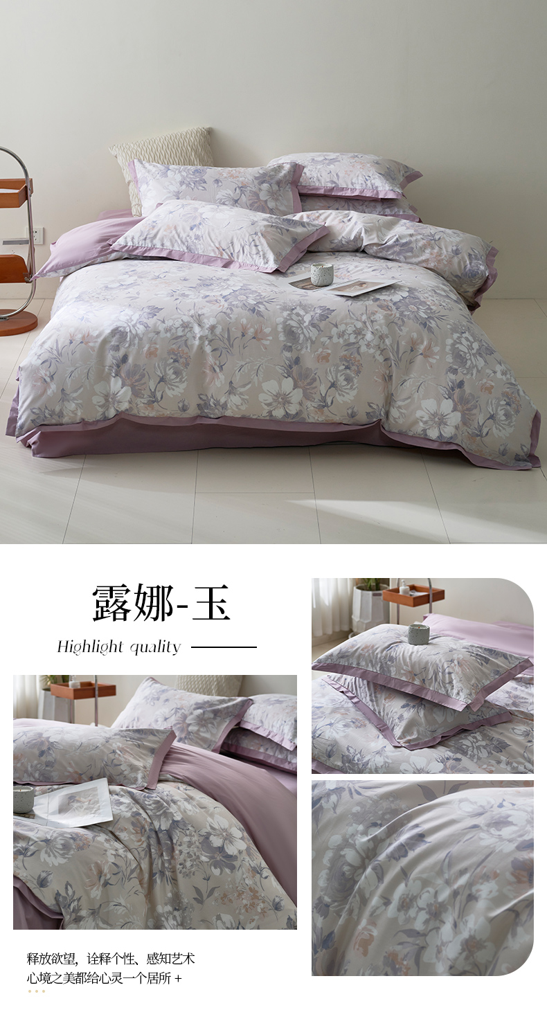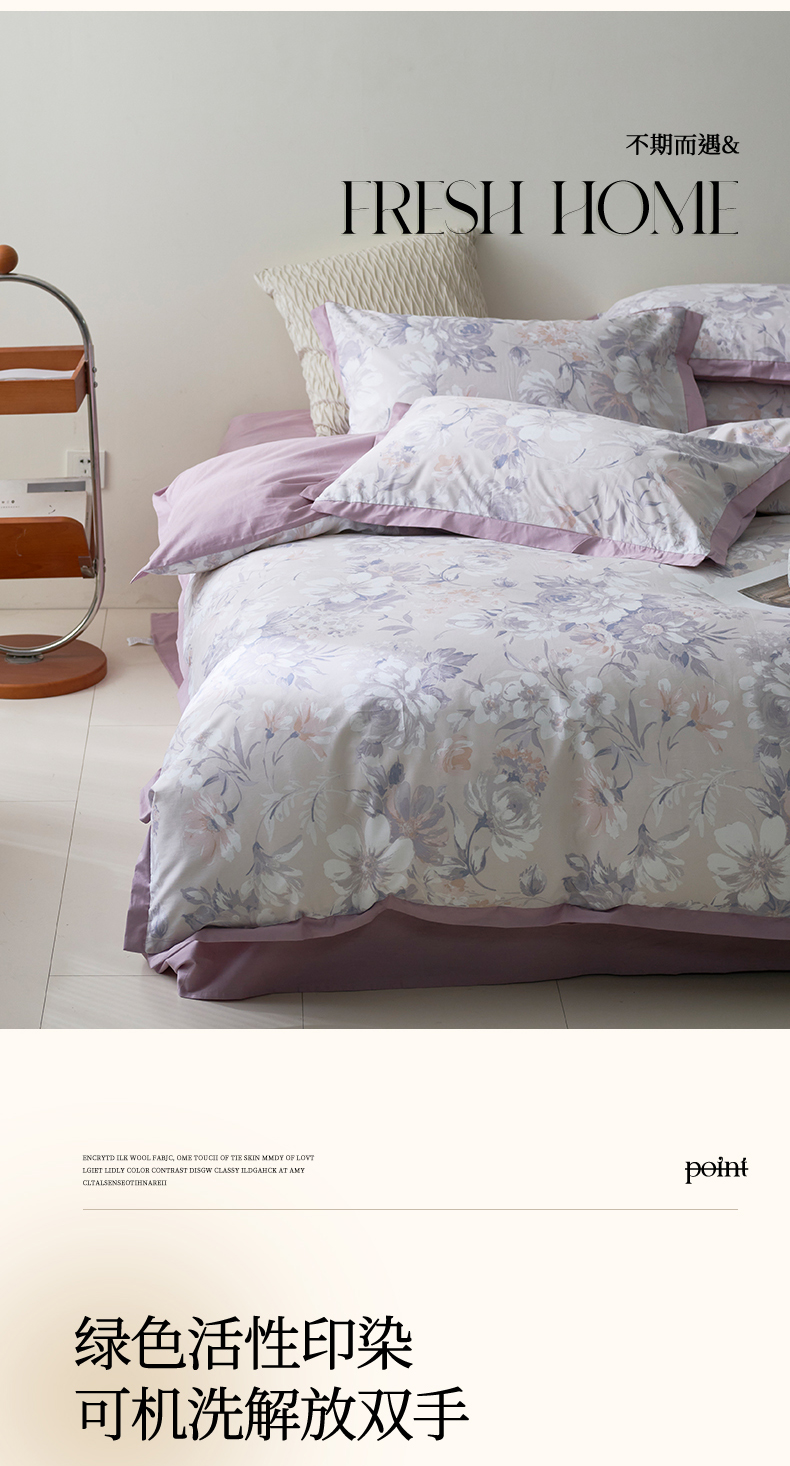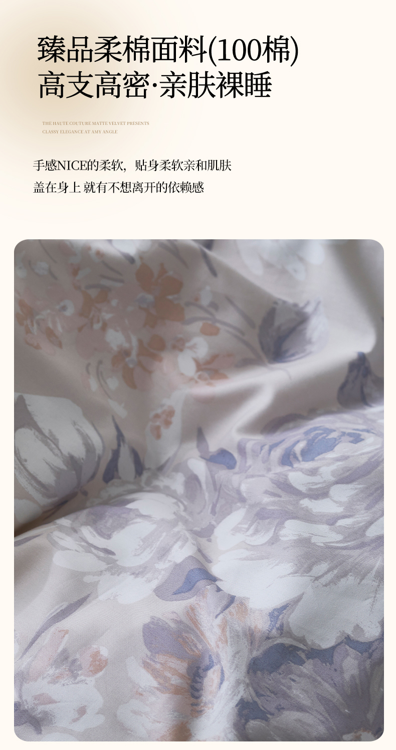 (总)橙艺家居 2026新款丝光铂金云棉印花四件套 本店线上严格控价,券后、活动后标准不得低于218元,以此类推。请各位老爷严格遵守,以免低价后再调整价格,影响链接权重,花朝拾露-紫,花田诗梦-粉,花颜外-粉,蔓月-紫,梦叶集-粉,慕枝下-绿,千叶密语-粉,闻栖-绿,雅莹-绿,叶间绒雪-兰,叶木槿-米,予她-粉,自然低语-绿,芙晚,奈亚,婉情-灰