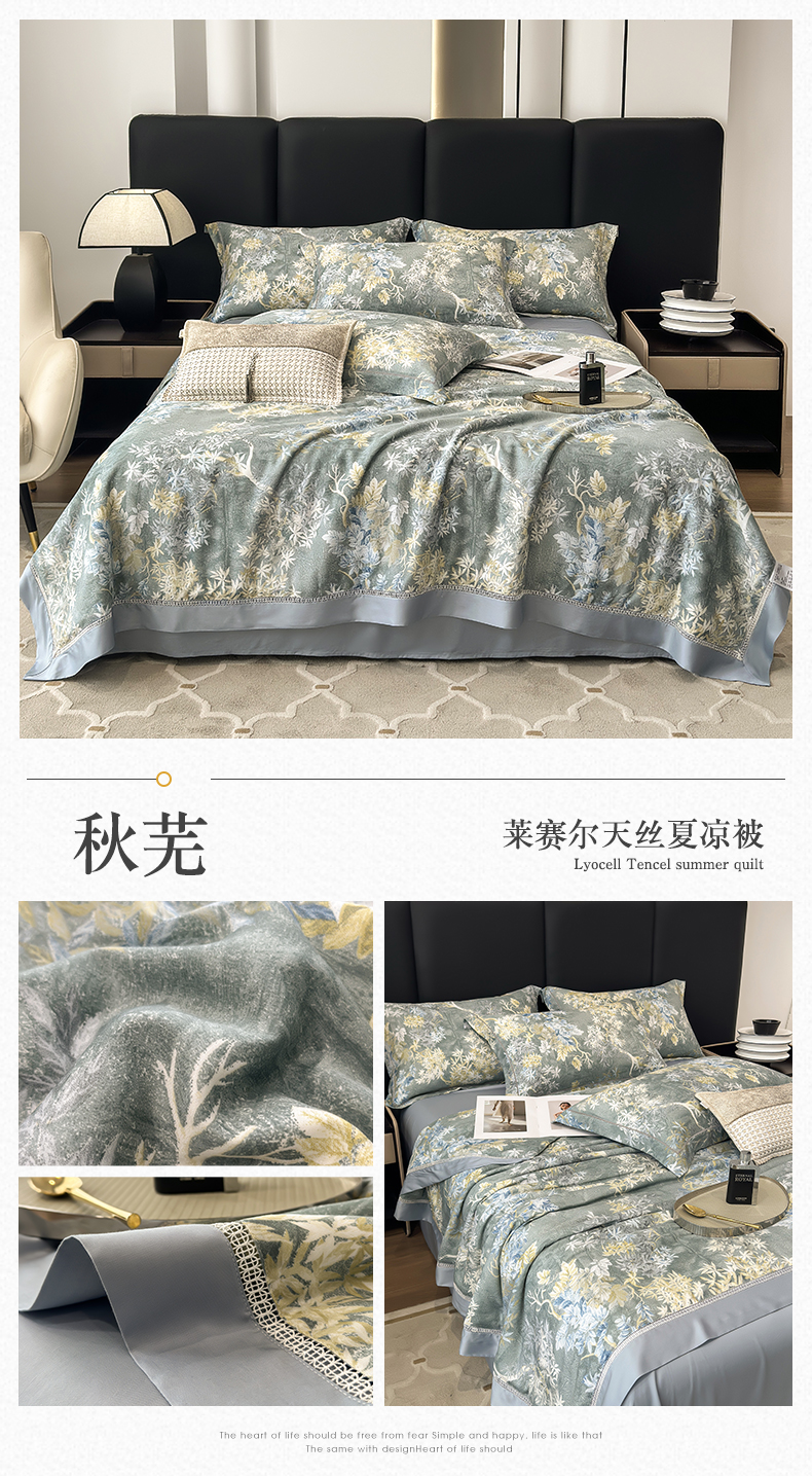 商品名称:娇逸家居 2025新款50支印花莱赛尔天丝夏被镂空款花边夏凉被 秋芜