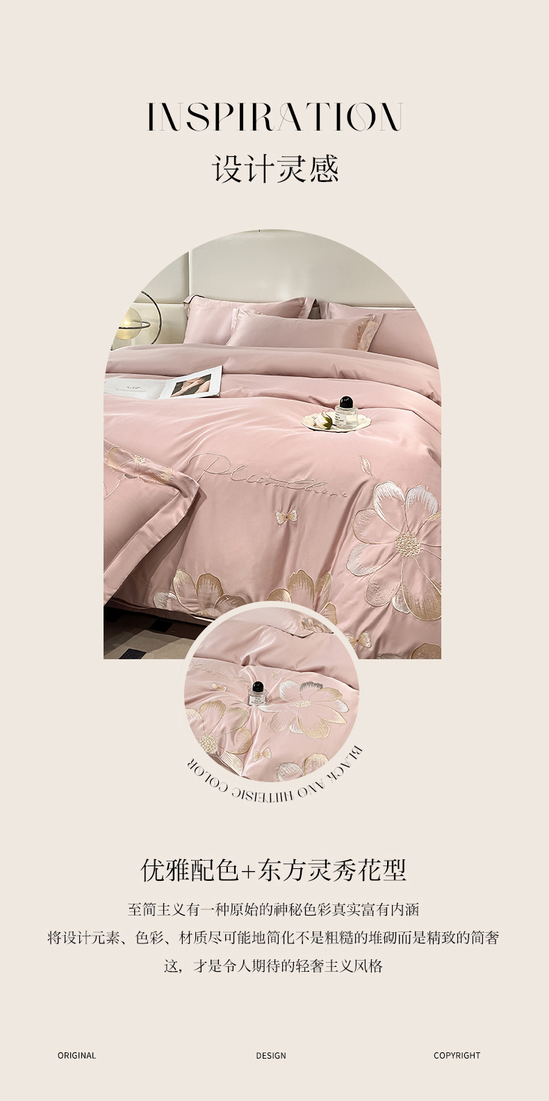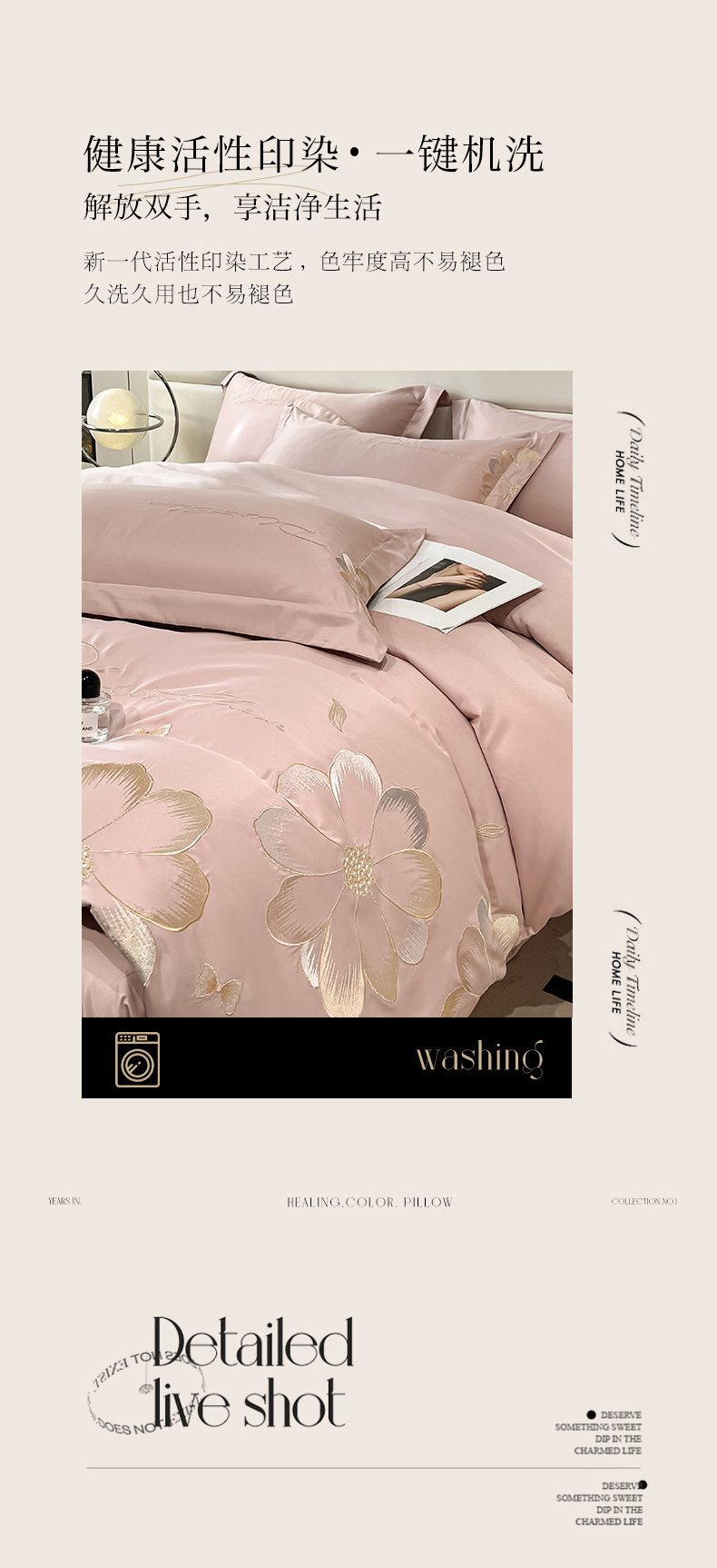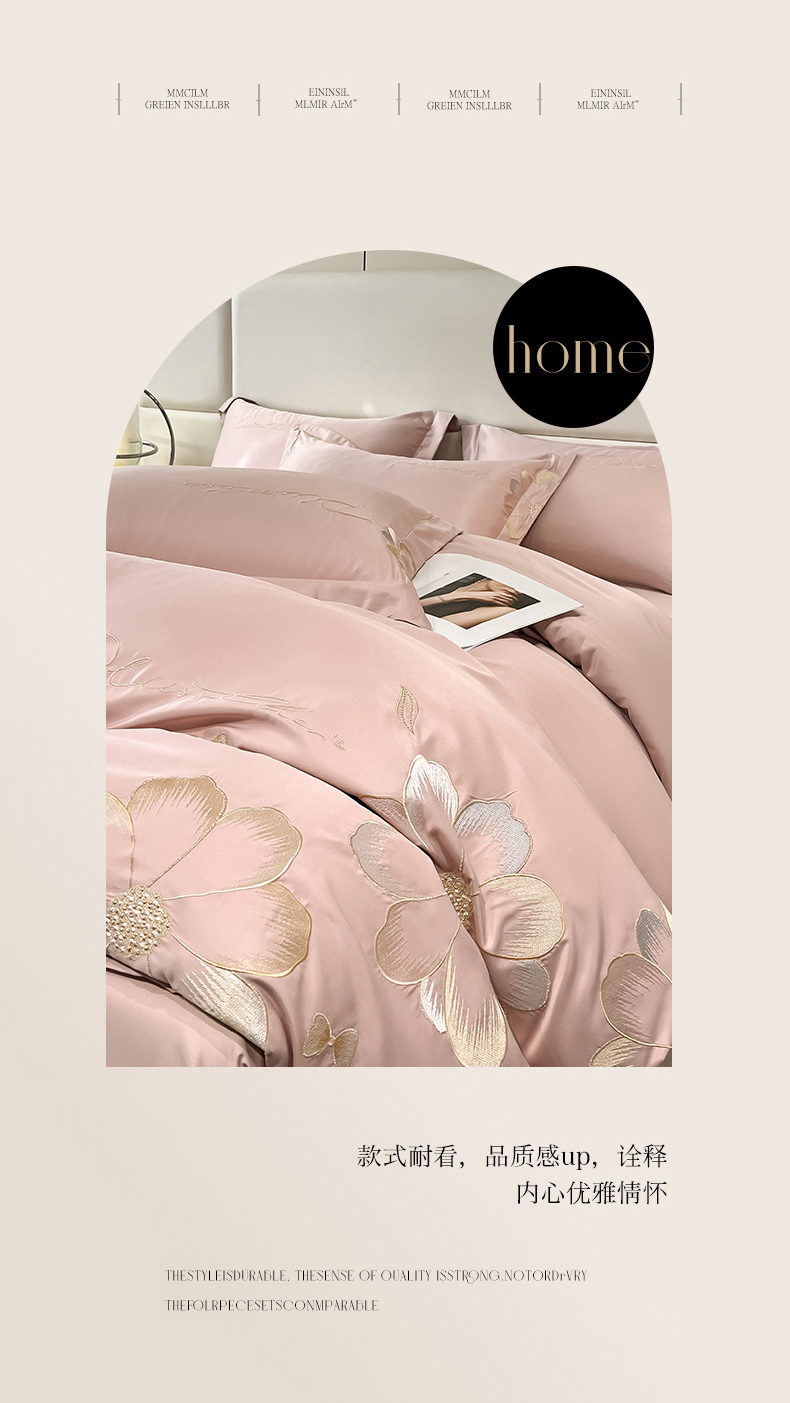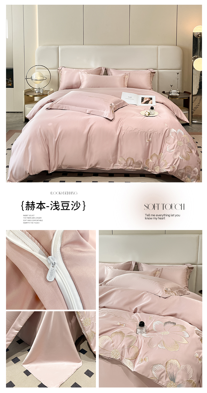 金牛座家纺 2025新款重工刺绣亲肤棉四件套-赫本系列 赫本-浅豆沙