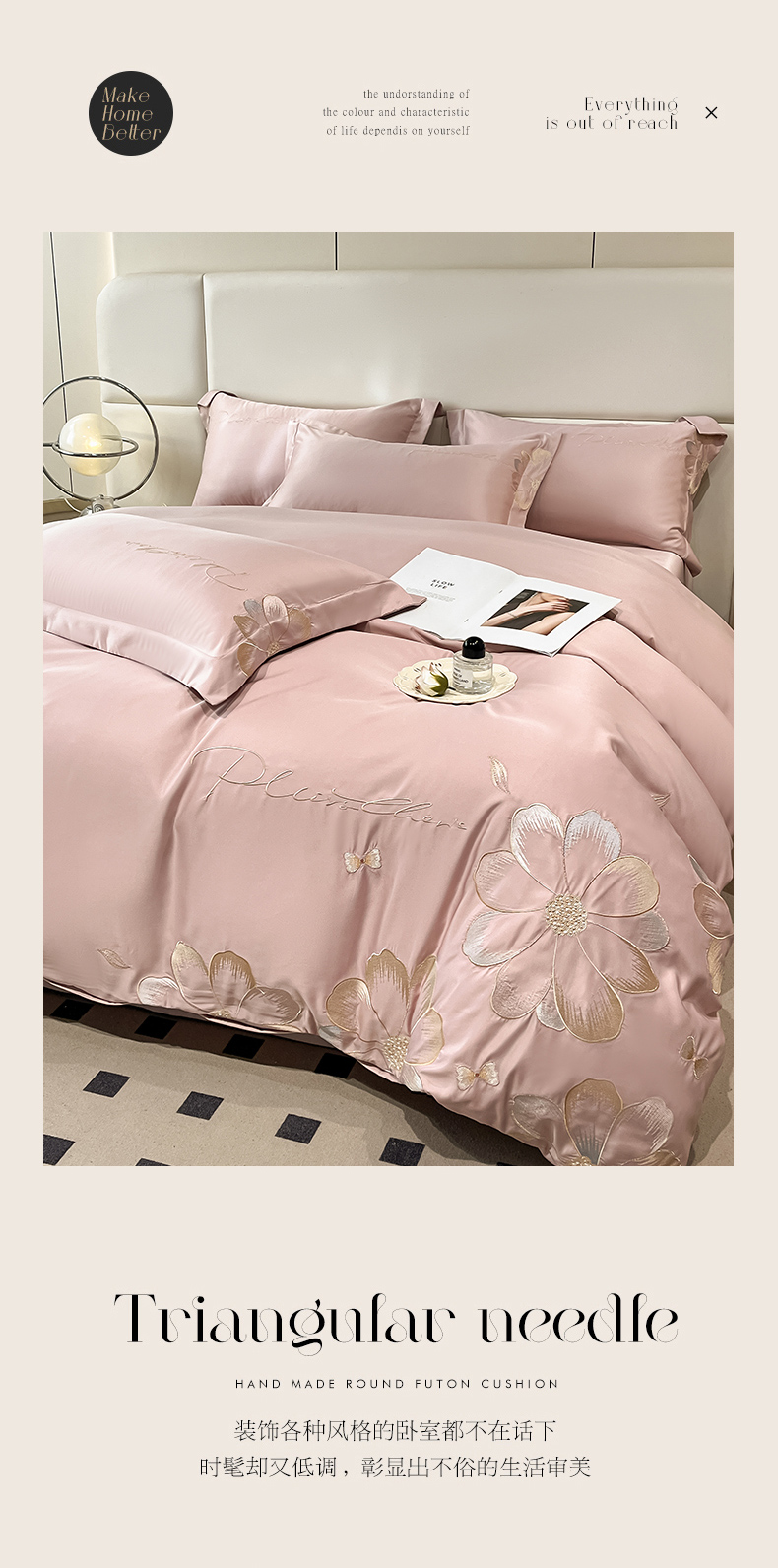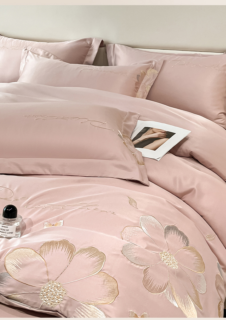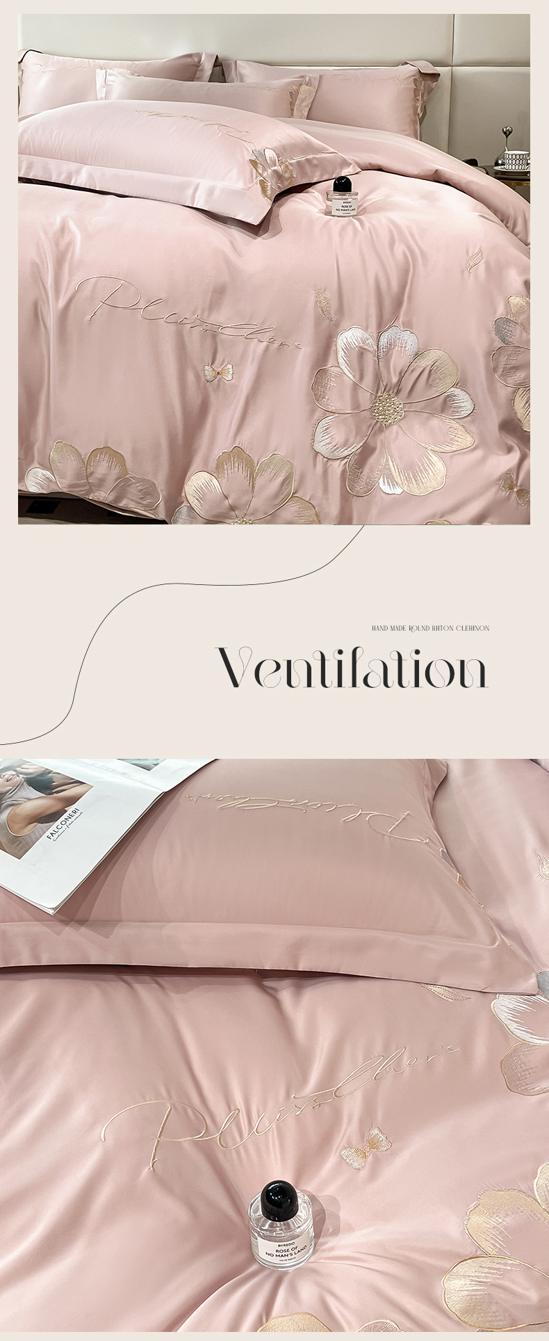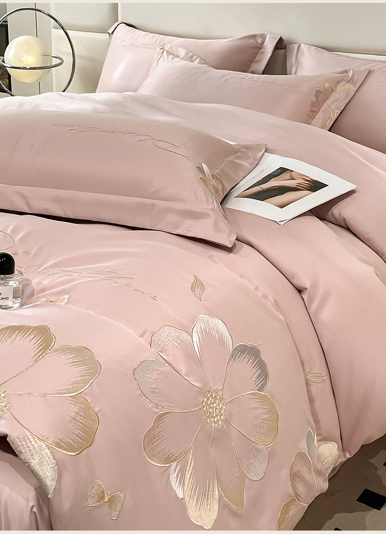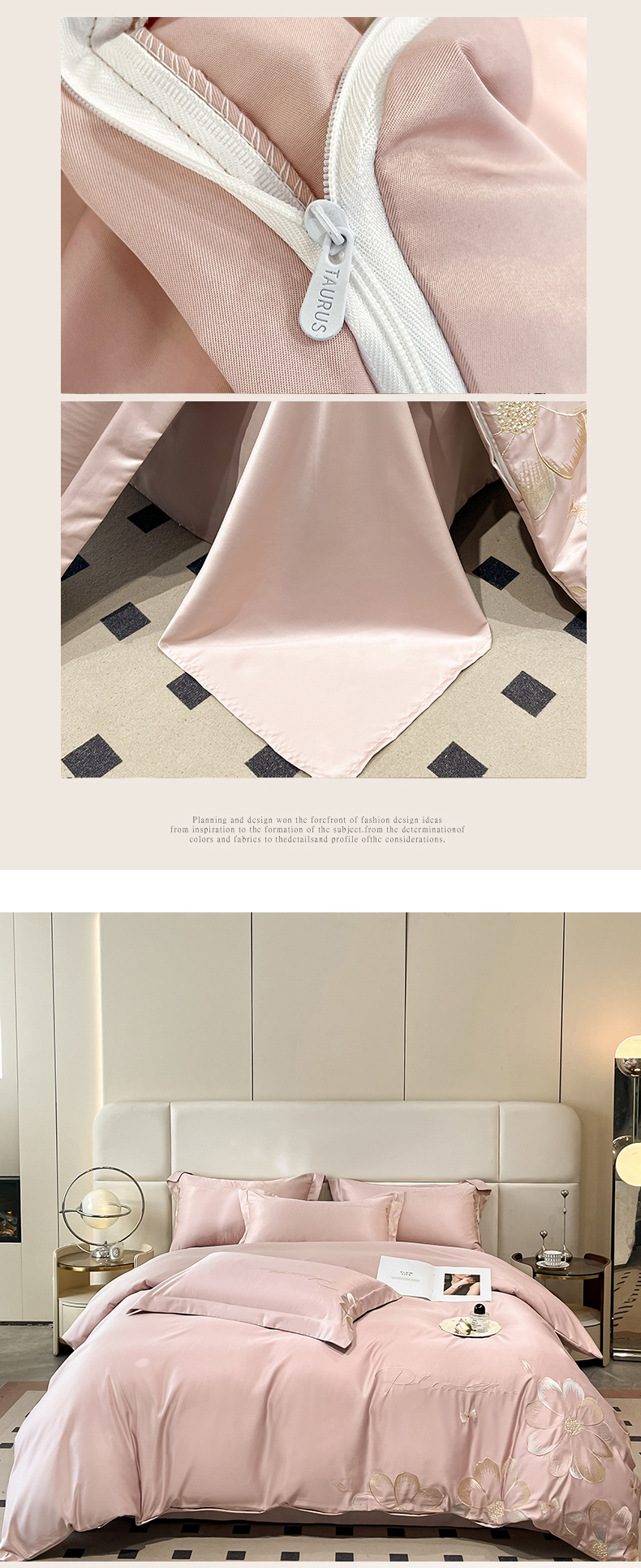 金牛座家纺 2025新款重工刺绣亲肤棉四件套-赫本系列 赫本-浅豆沙