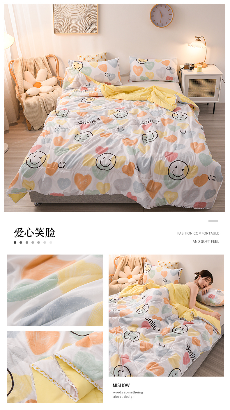 鑫贝阳 2025新款亲肤水洗棉小花边印花夏被 爱心笑脸,爱心笑脸