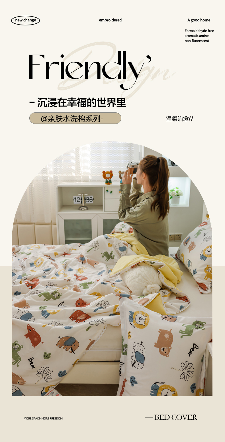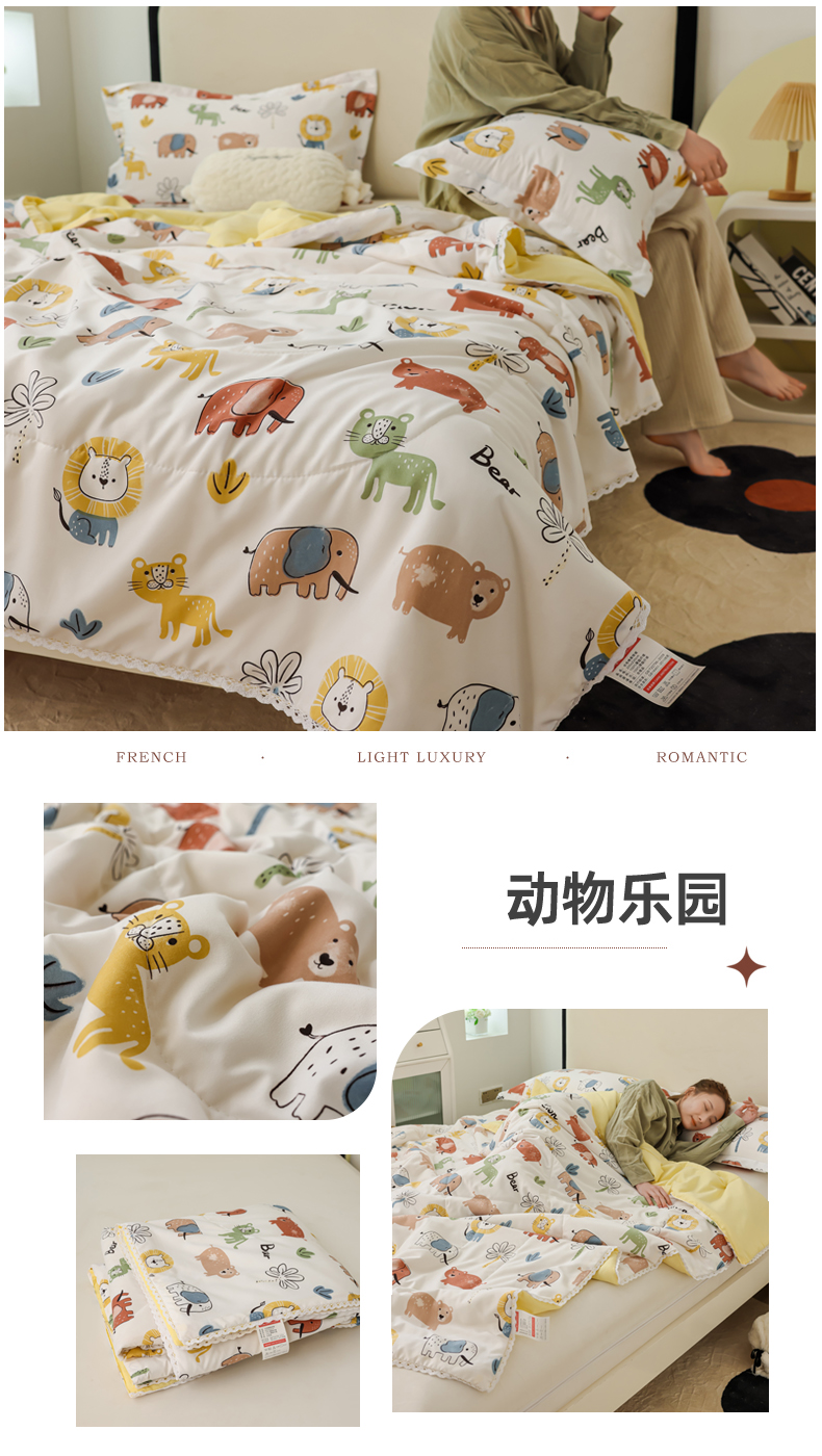 鑫贝阳 2025新款亲肤水洗棉小花边印花夏被 绚熊,绚熊