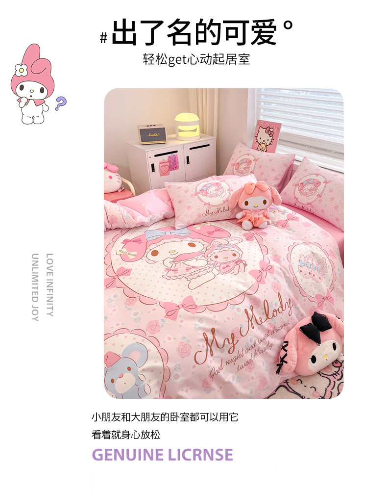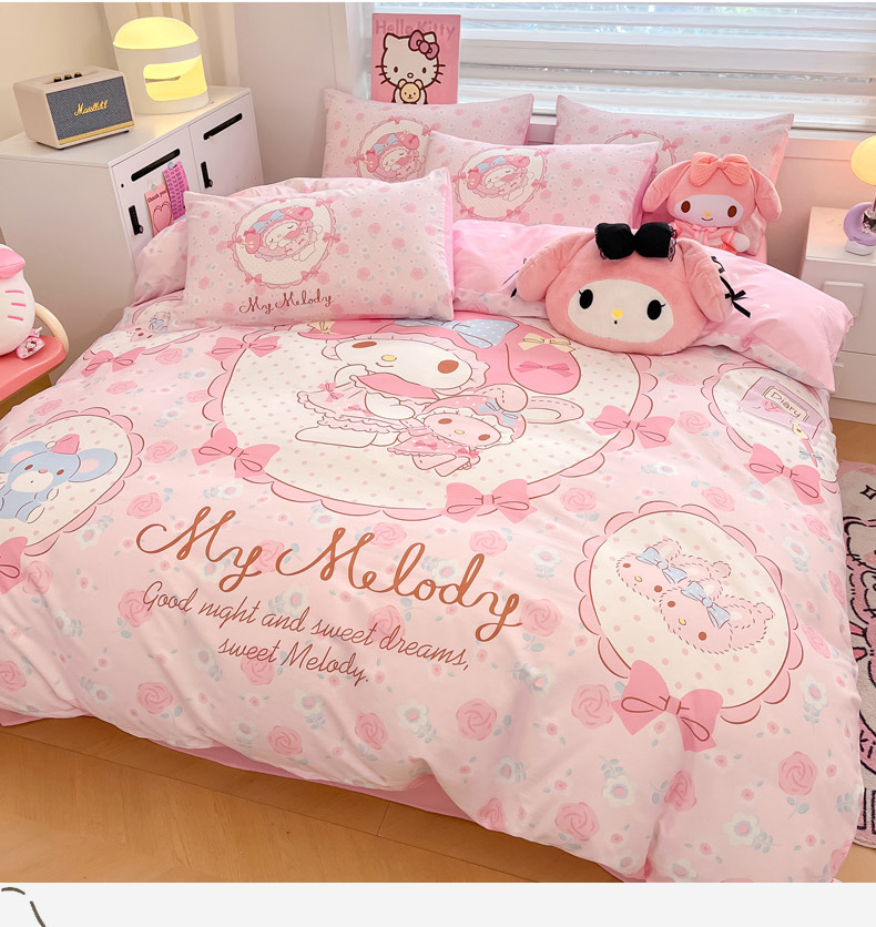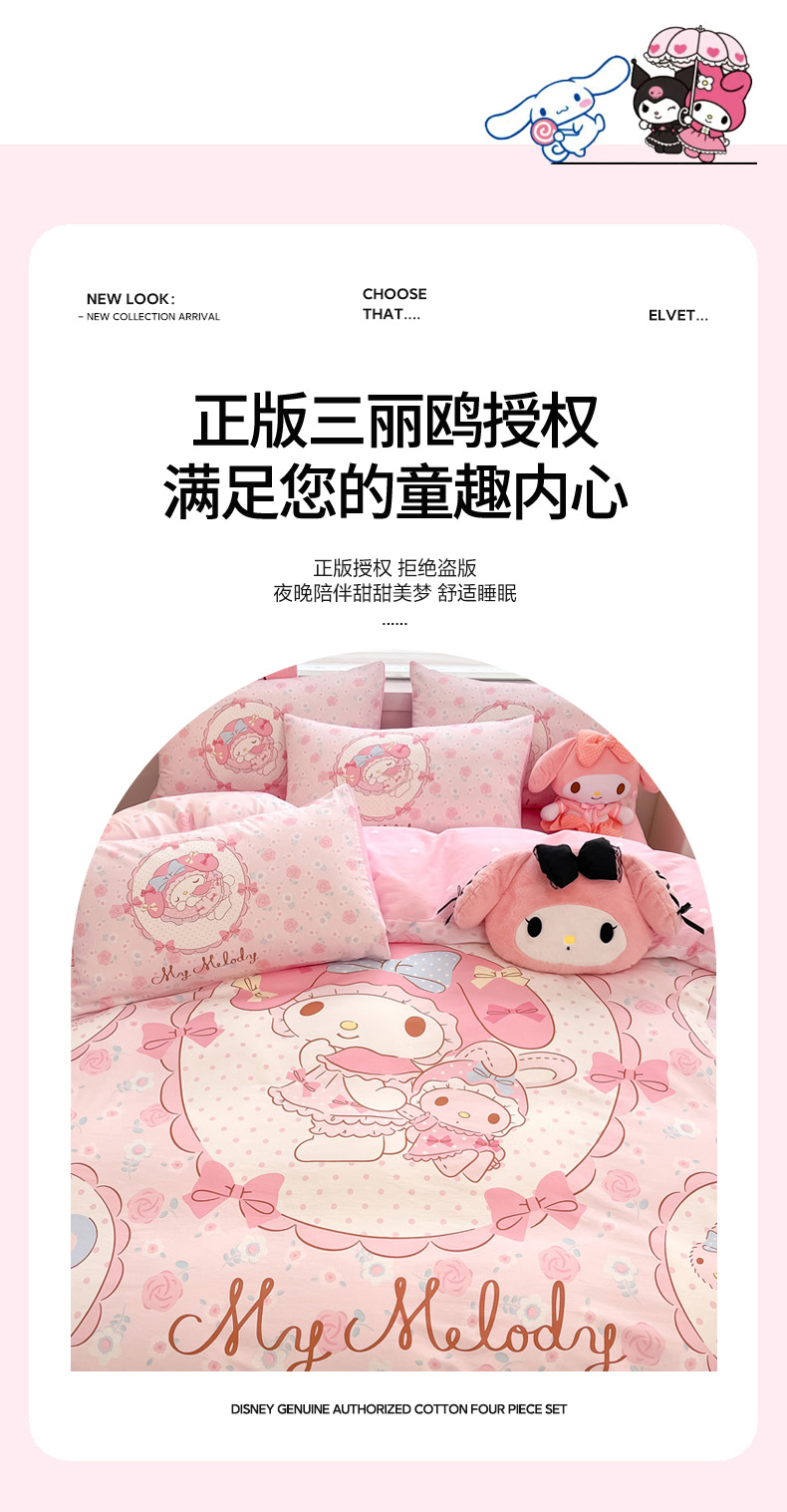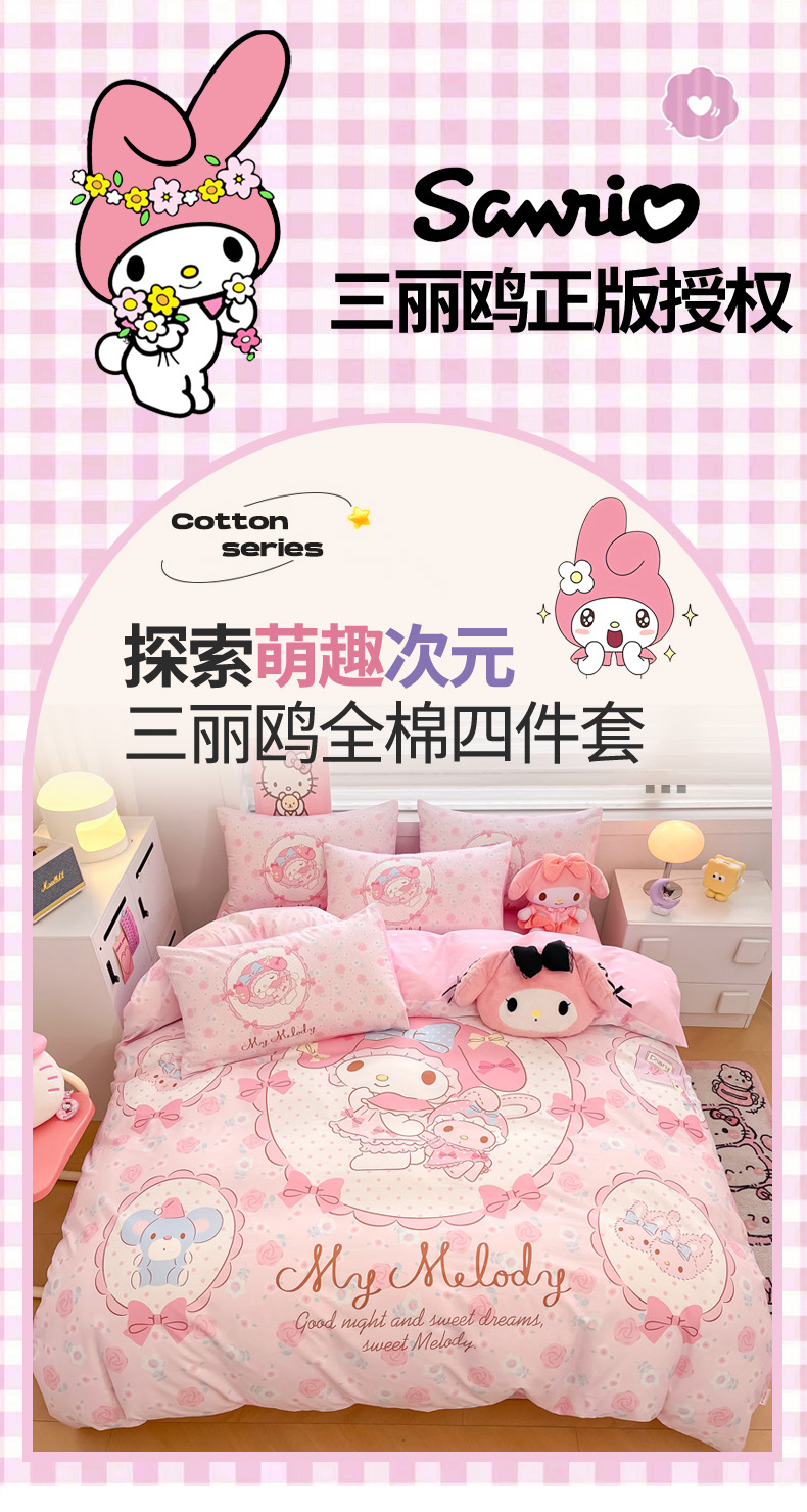 当前位置: 91家纺网 > 商品网购 > 床品套件 > 四件套 > 全棉普通四件套 > 暮思家居 2025新款正版授权三丽鸥大阪全棉数码印花纯棉四件套系列-第三批(专版花型) 大版-花园美乐蒂