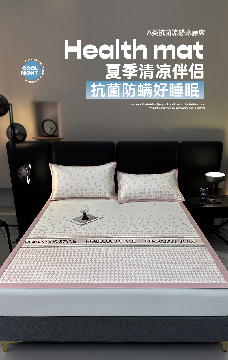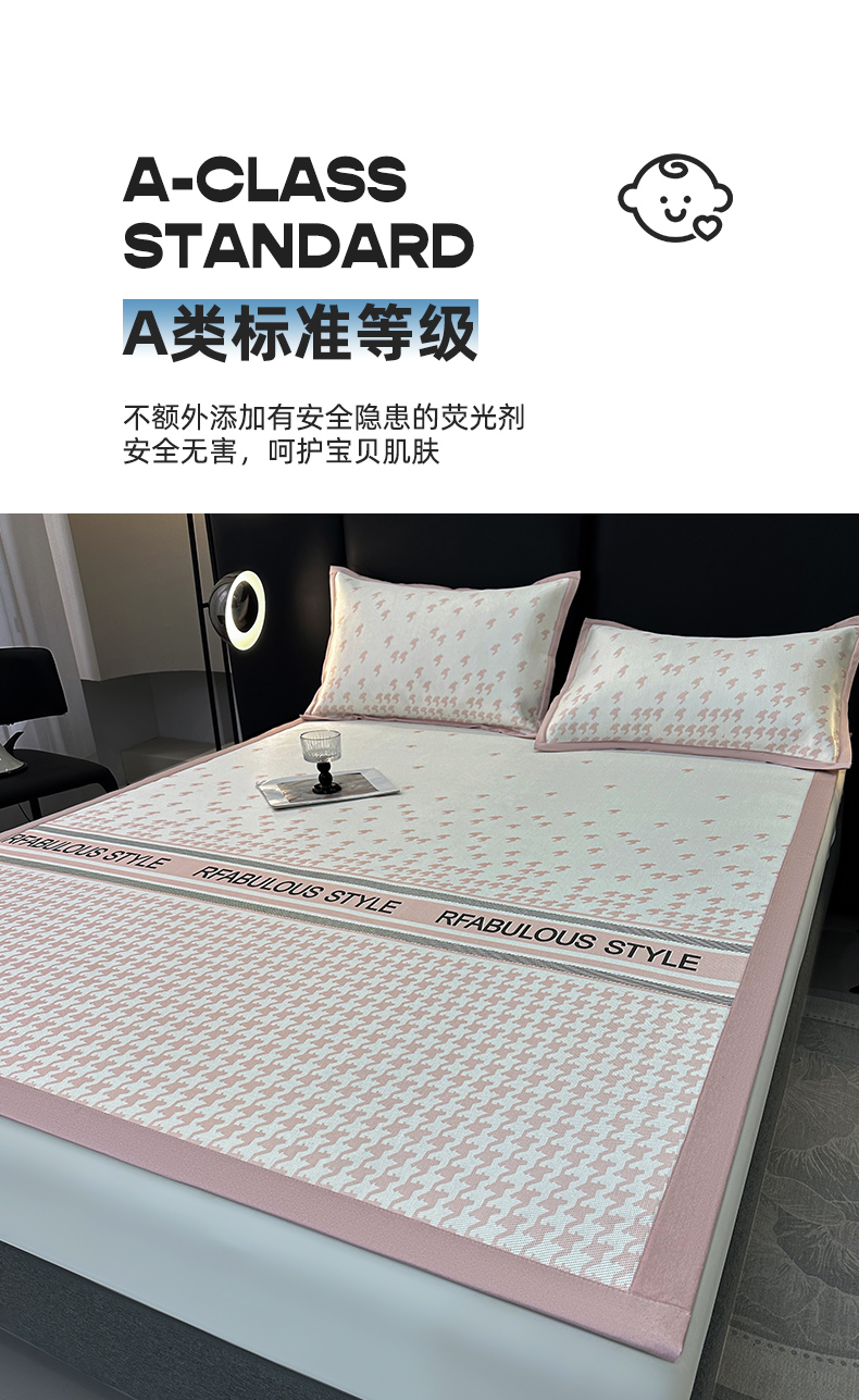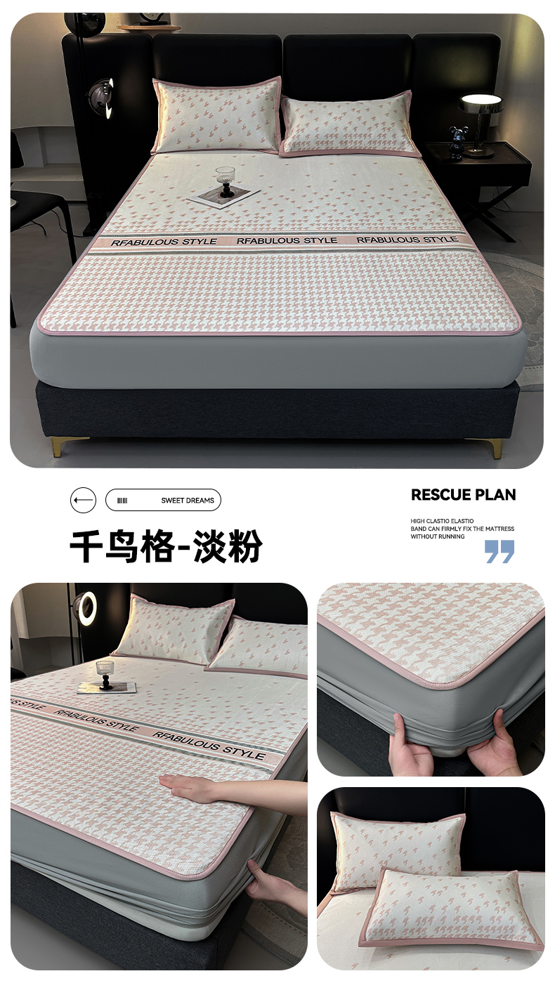 商品名称:全季家居 2025新款A类轻奢系列数码印花冰藤席凉席席子 千鸟格-淡粉 床席