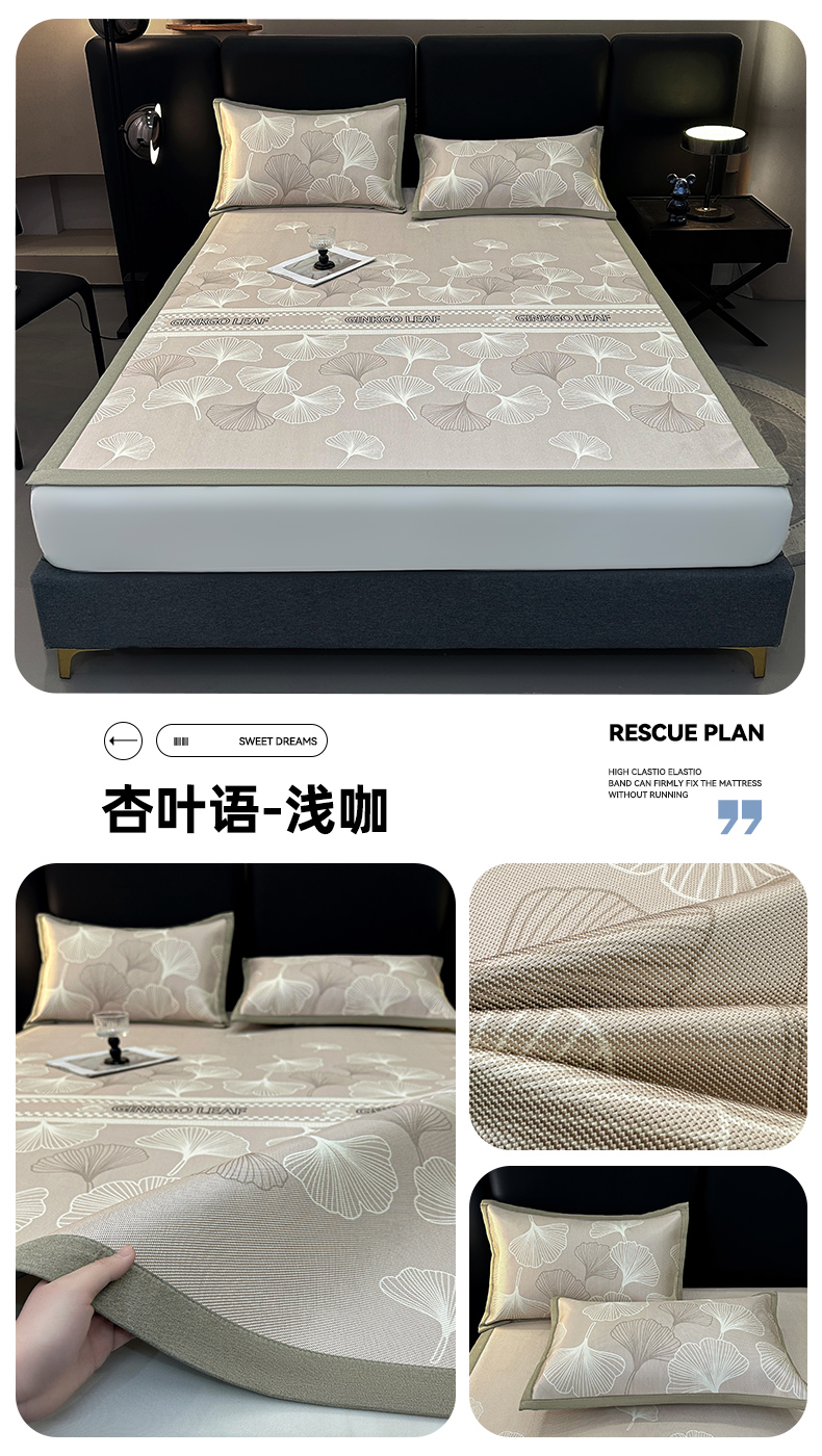 (总)全季家居 2025新款A类抗菌防螨幸运星系列冰藤席凉席席子,金咖 床席,水绿 床席,银灰 床席,金咖 床笠,水绿 床笠,银灰 床笠
