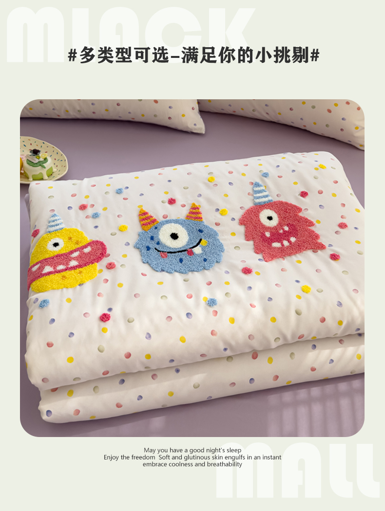 • 91家纺网 家纺一手货源 找家纺 (总)曼谷家纺 2025新款水洗棉超软毛巾绣夏被直播热款,煤球-芝士绿,煤球-小黑,飞行员-蓝芝士,咖啡时光-奶咖,三小怪-波点紫
