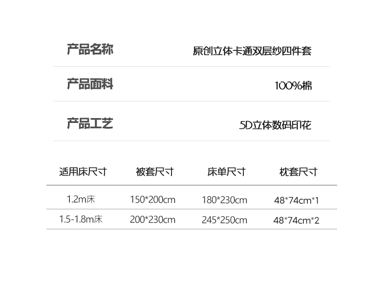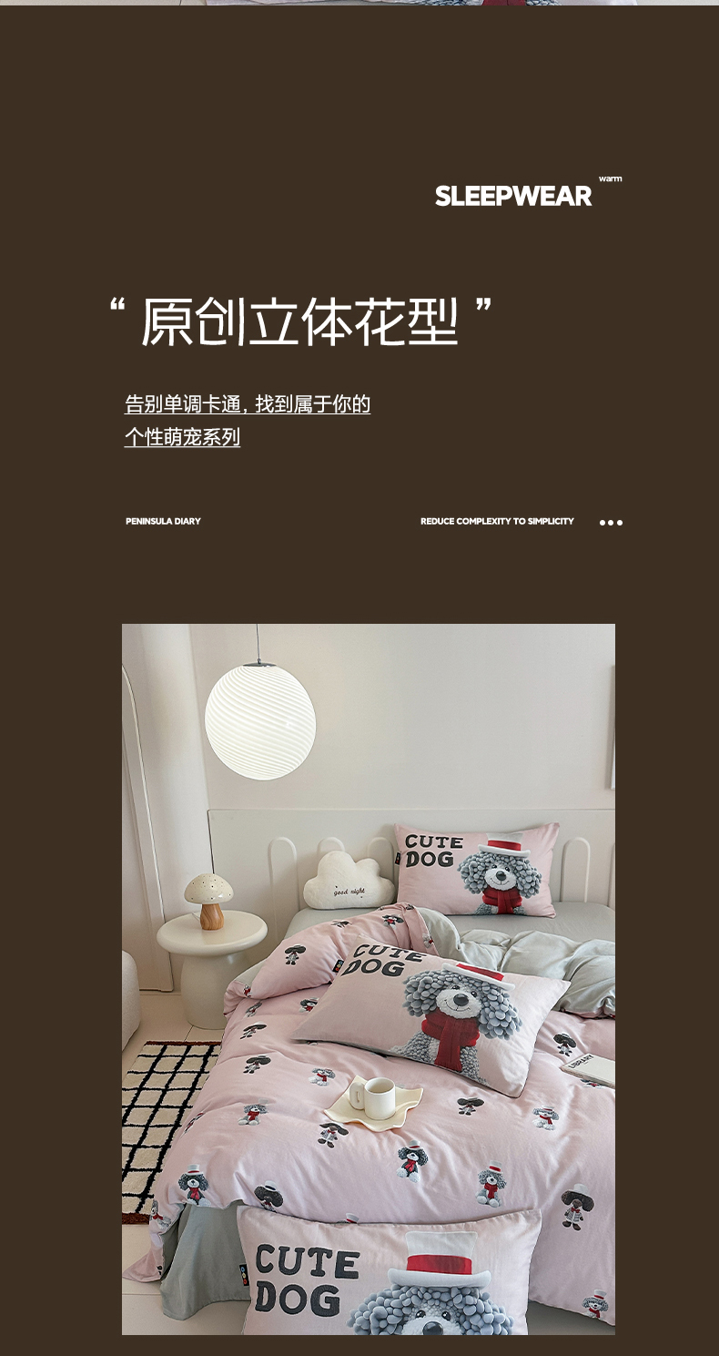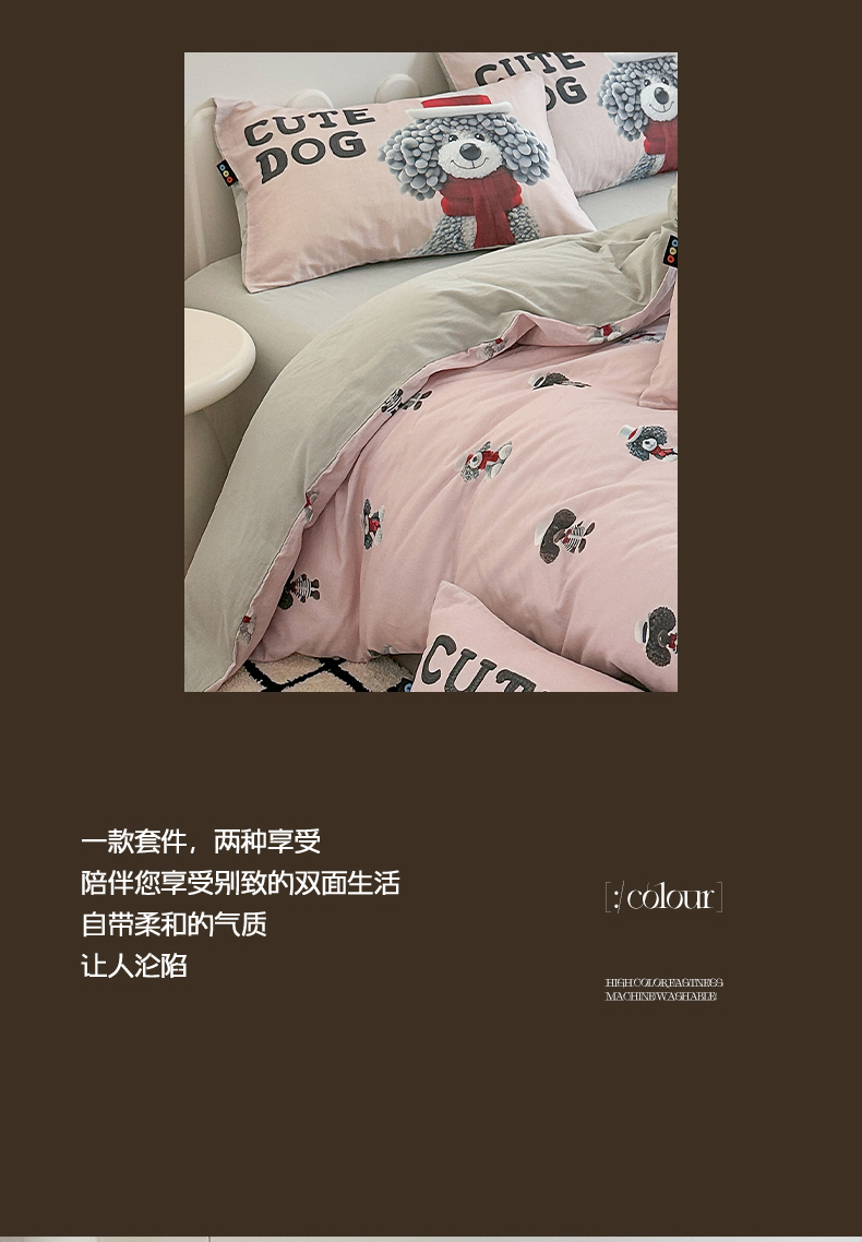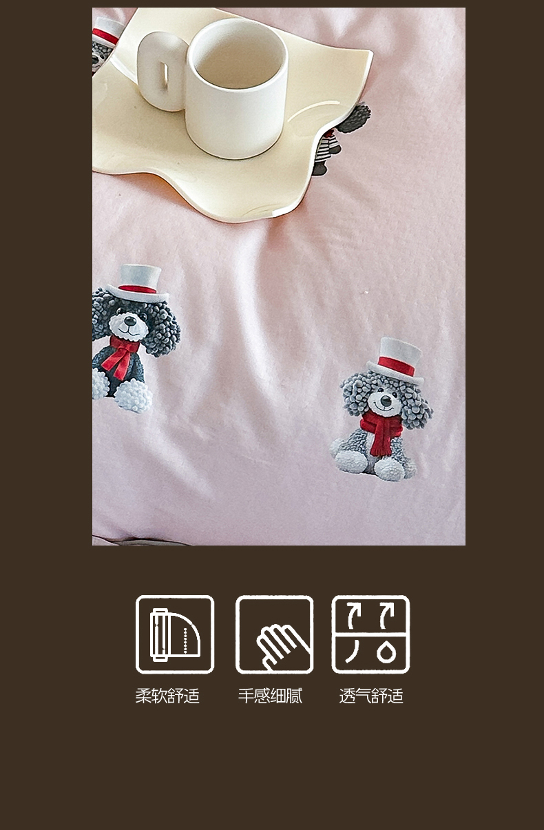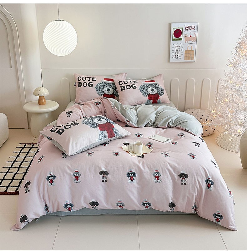 商品名称:RYB红黄兰 2025新款ins卡通5D立体数码全棉纯棉有氧双层纱四件套系列 粉色小奶狗