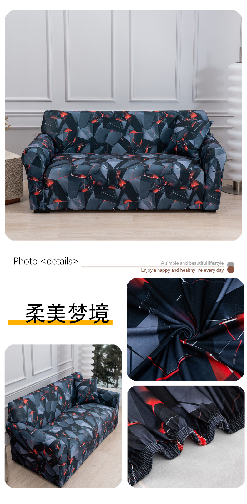 (总)兴妮雅家纺 2025新款折叠沙发套,几何秘境,漫步时光,轻盈叶语,柔美梦境,叶脉情深