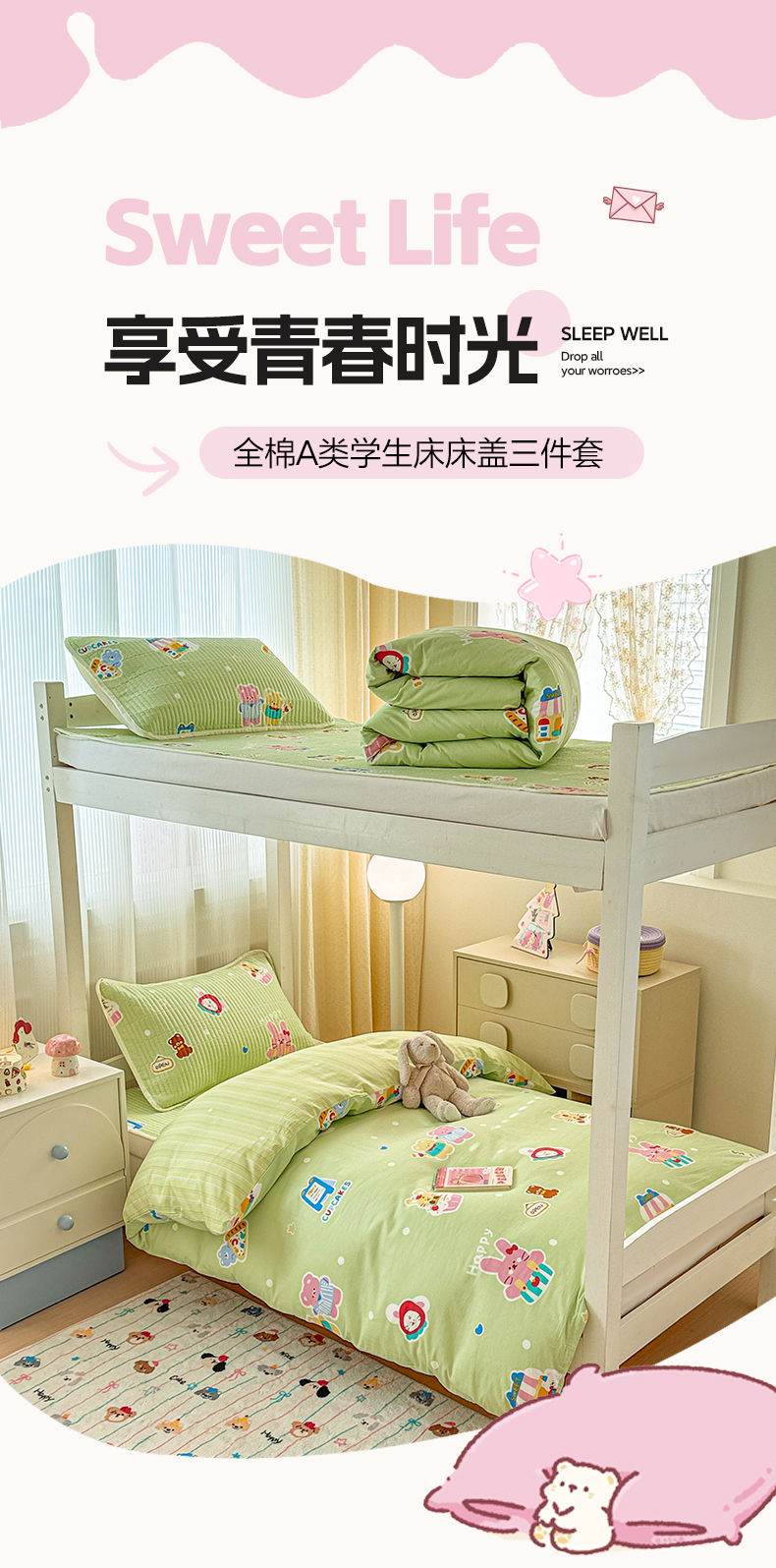 当前位置: 91家纺网 > 商品网购 > 床品套件 > 三件套 > 沐辰 2025春夏新款A类全棉纯棉学生床床盖三件套 庄园小鸭