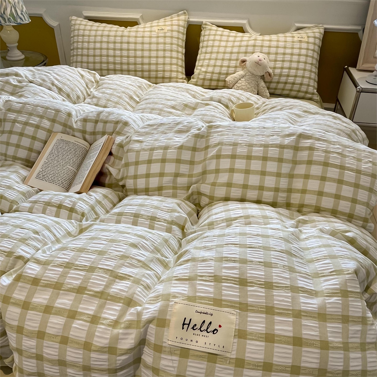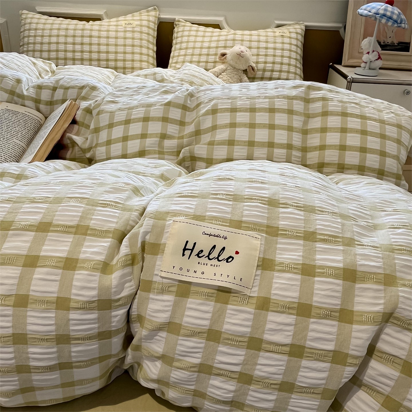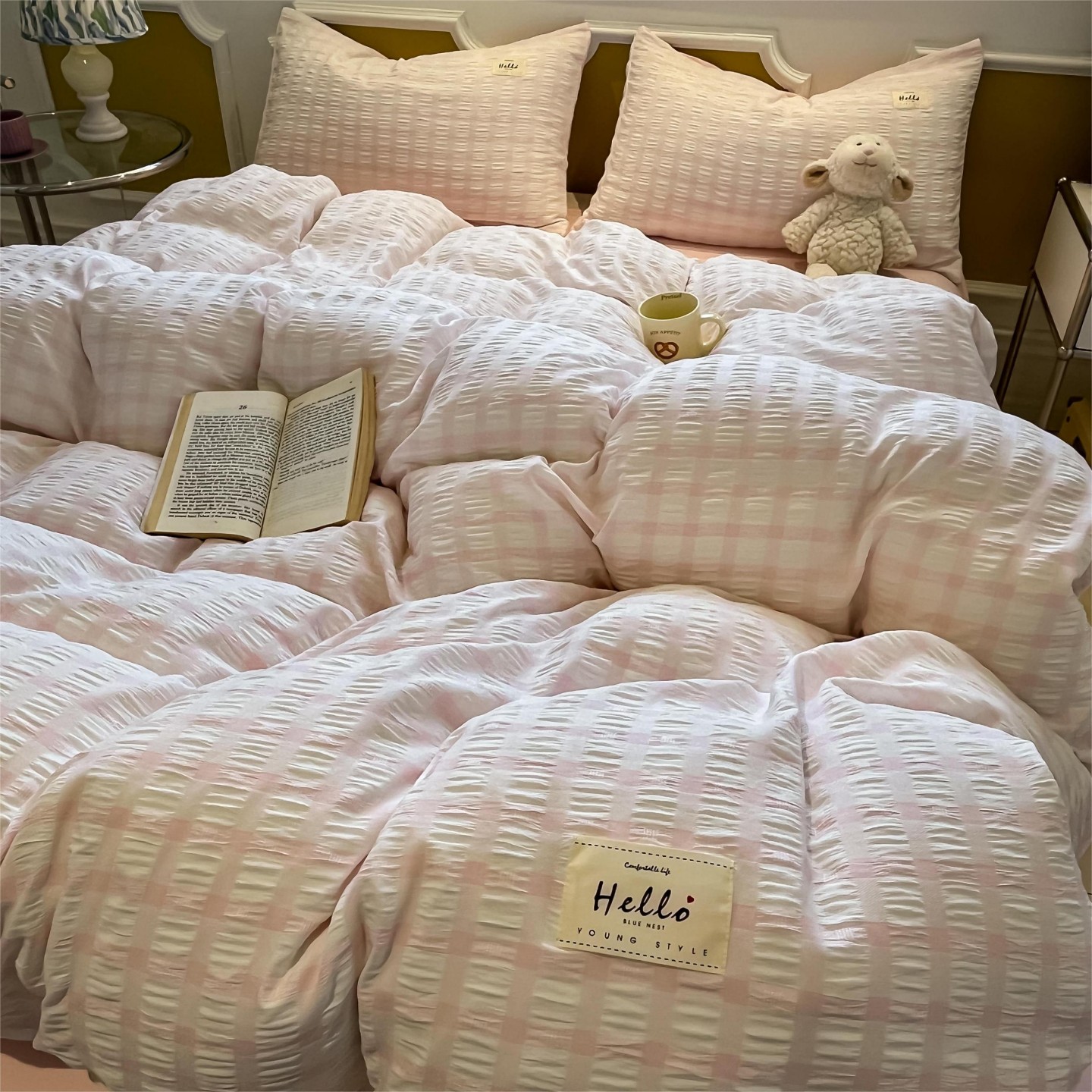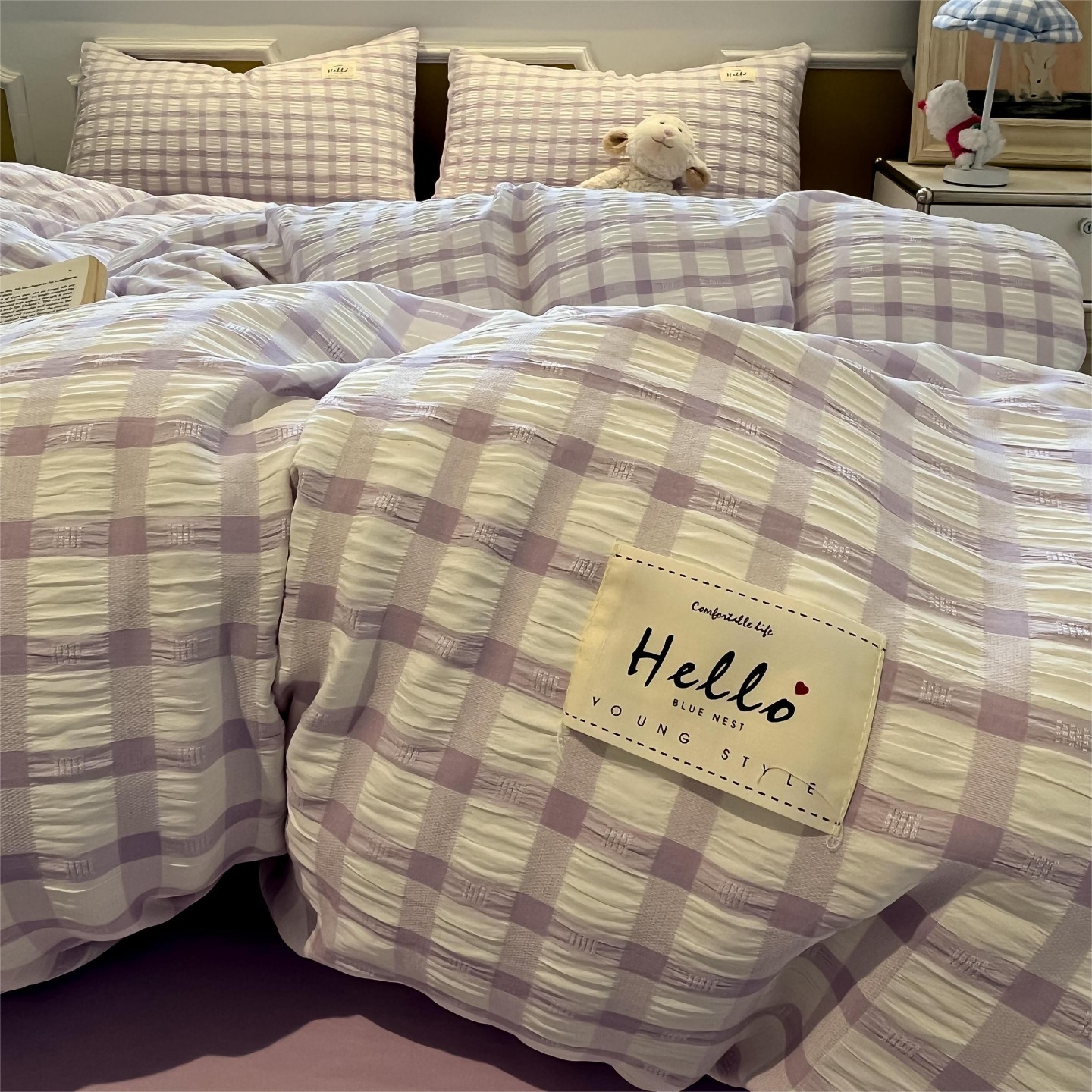 当前位置: 91家纺网 > 商品网购 > 床品套件 > 四件套 > 双层纱四件套 > 顾里家纺 2025新款韩系格子阳离子泡泡纱四件套-第一组 香薰紫格