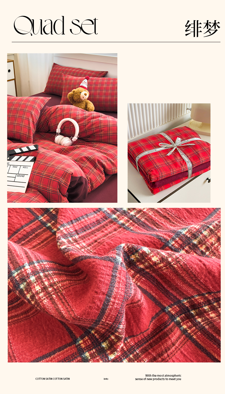 当前位置: 91家纺网 > 商品网购 > 床品套件 > 四件套 > 双层纱四件套 > 亨通家纺 2025新款复古原麻双层纱格子系列四件套 焦糖格梦