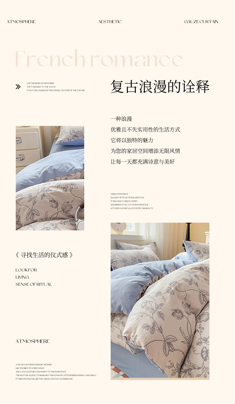 当前位置: 91家纺网 > 商品网购 > 床品套件 > 四件套 > 双层纱四件套 > 亨通家纺 2025新款复古原麻双层纱臻至系列四件套 复古棕花