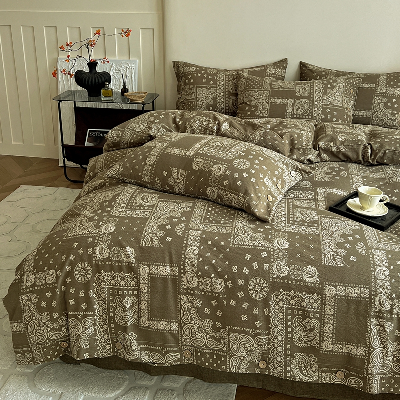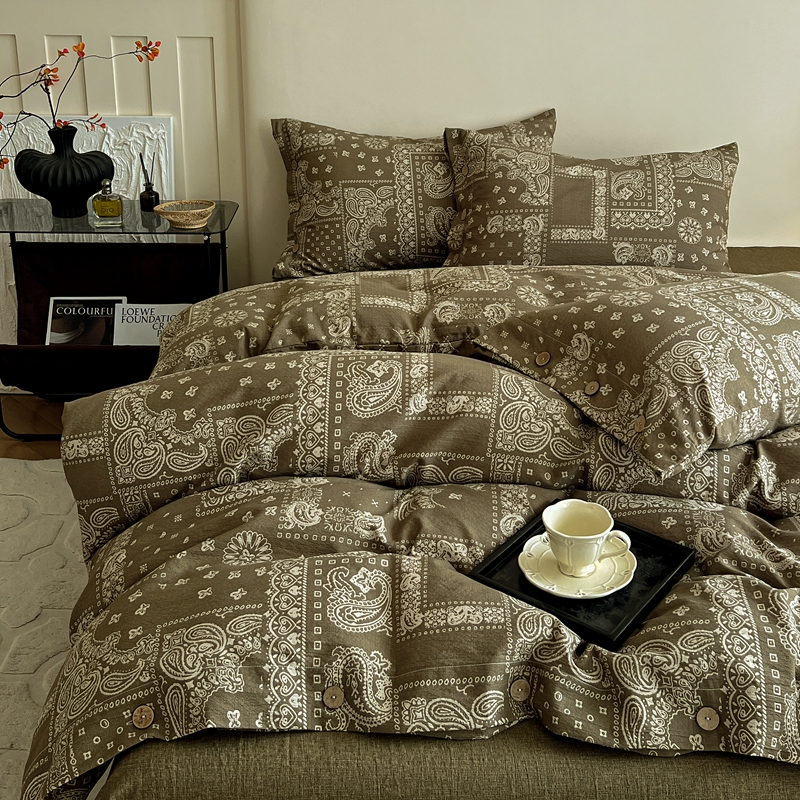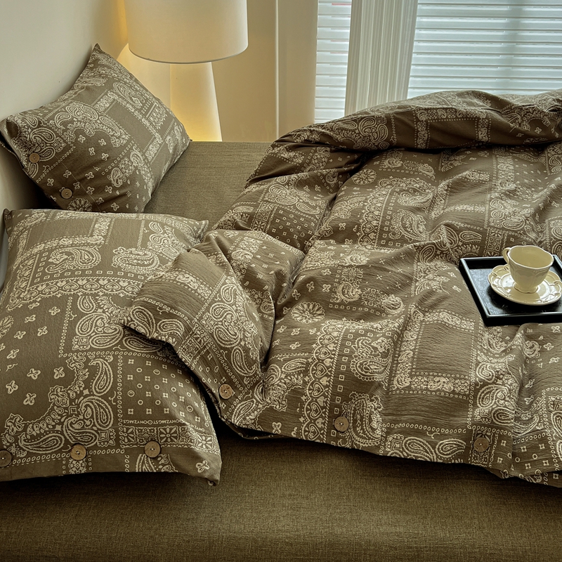 仟网汇 2025新款亚麻纽扣款四件套 印象庄园