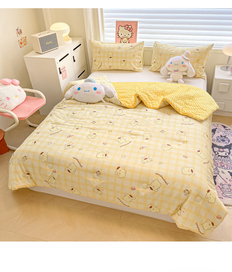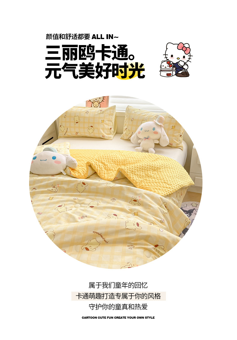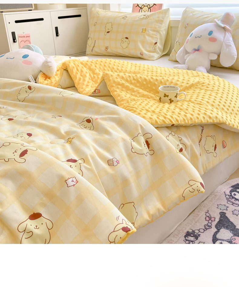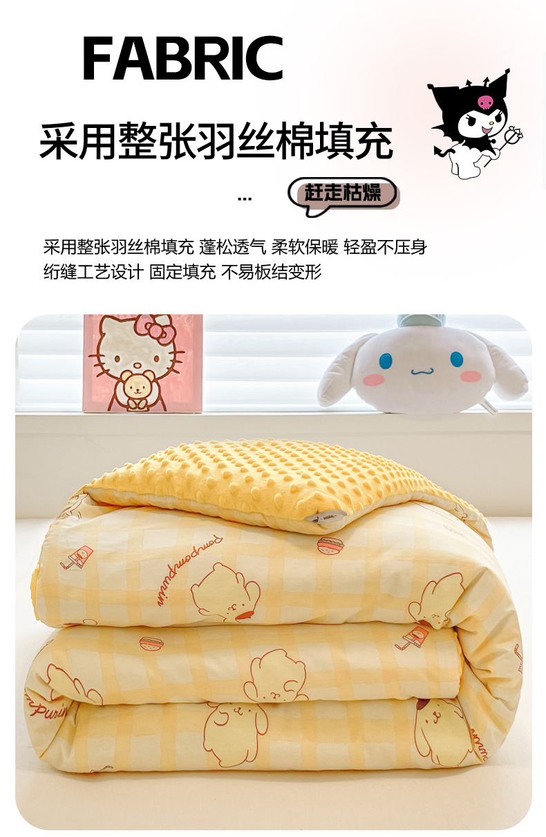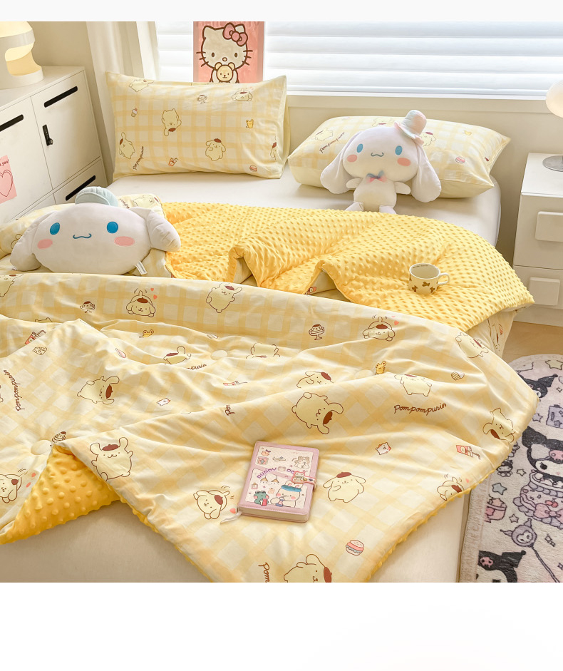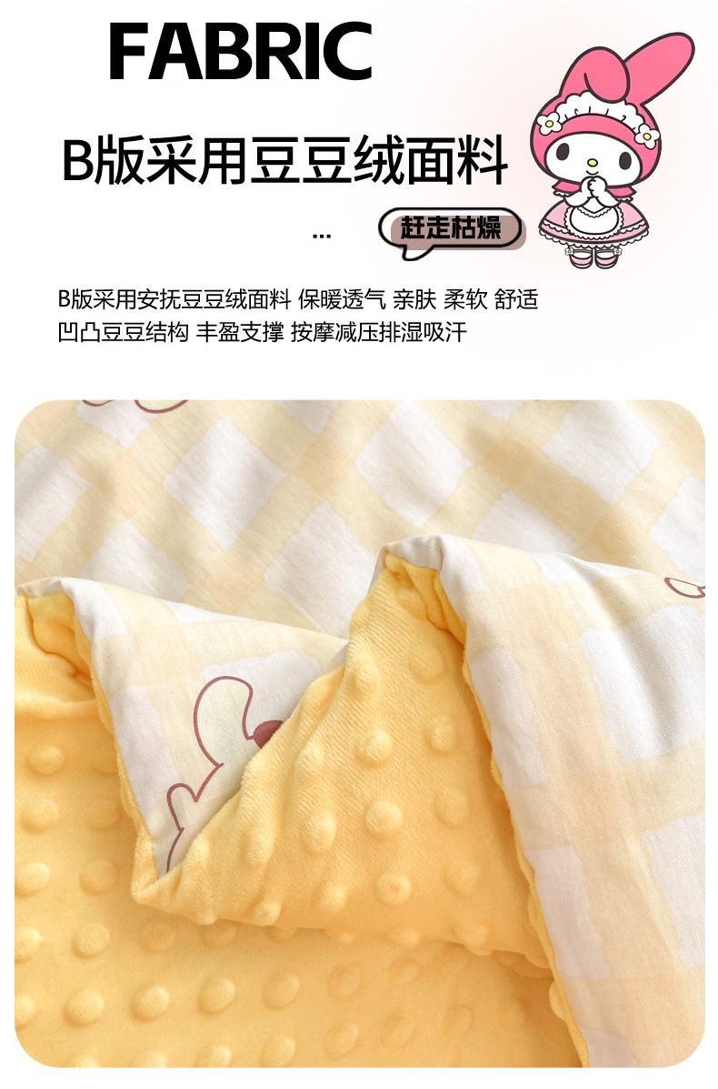 • 91家纺网 家纺一手货源 找家纺 暮思家居 2025新款正版授权三丽鸥A版纯棉B版安抚豆豆绒春秋被冬被豆豆被被子被芯系列 豆豆被-焦糖布丁狗