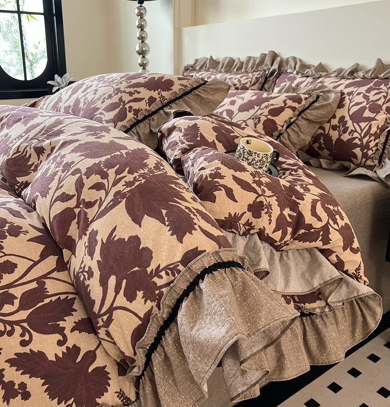 当前位置: 91家纺网 > 商品网购 > 床品套件 > 四件套 > 其它四件套 > 喜颜 2025新款亚麻爆款花边四件套-直播热款 扶桑花-红