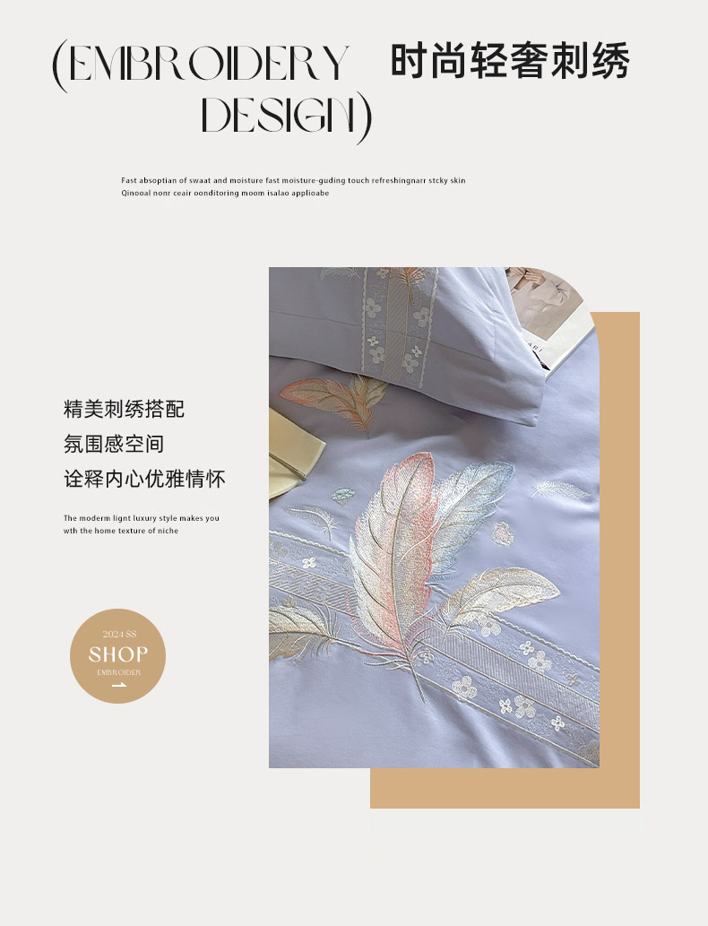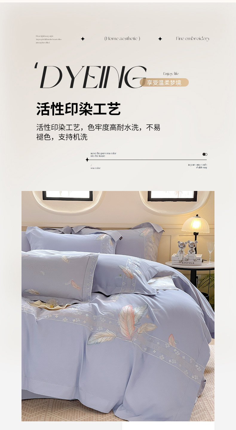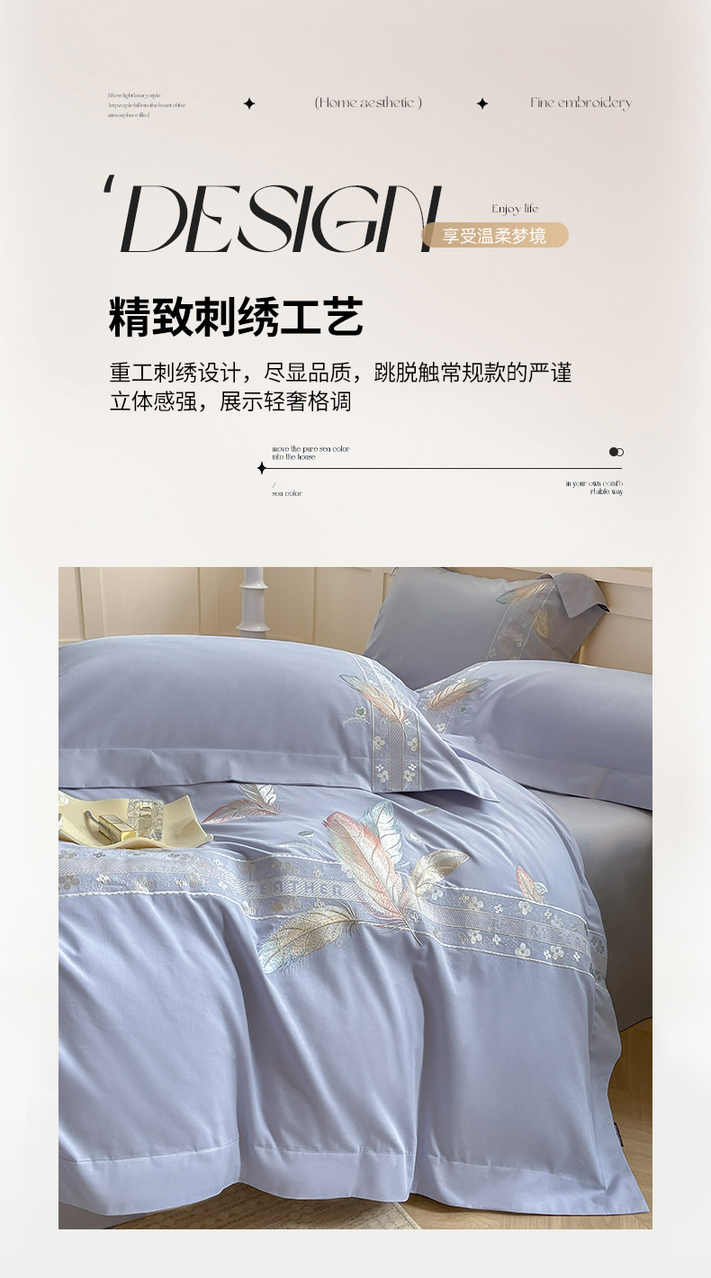 (总) 2025春夏长绒棉四件套纯棉全棉轻奢风床单被套重工刺绣床上用品,芊羽梦-白粉,芊羽梦-茶绿,芊羽梦-黛紫,芊羽梦-慕蓝,芊羽梦-颜粉