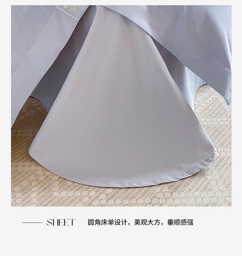 商品名称:2025秋冬新品A类加厚保暖全棉磨毛四件套纯棉被套重工刺绣轻奢床笠款直播热款床上用品 缦禾-黛紫