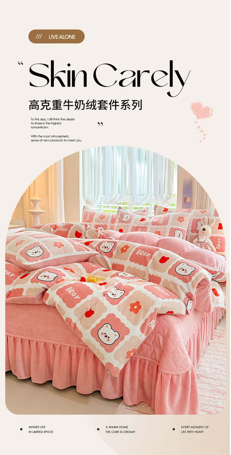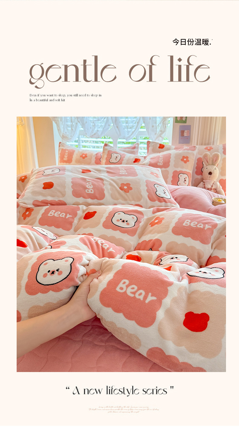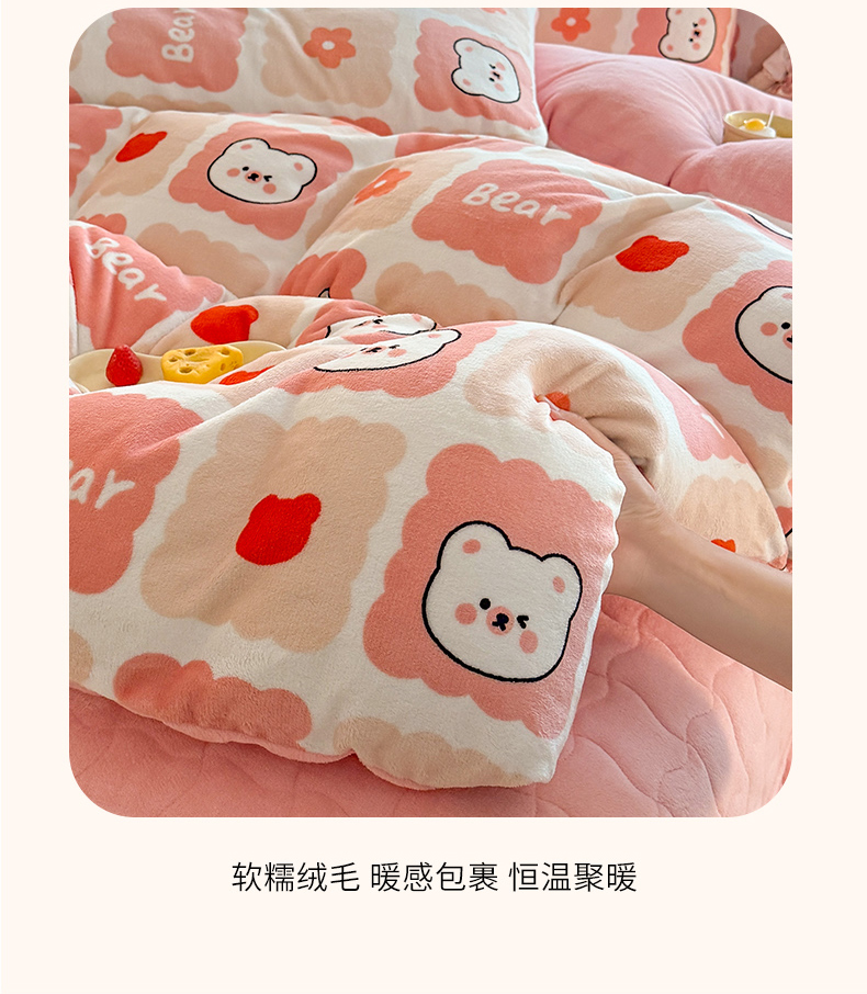 当前位置: 91家纺网 > 商品网购 > 床品套件 > 四件套 > 其它四件套 > 金盛皇朝家纺 2025新款高克重印花牛奶绒床单床盖单件三件四件套 奶绒熊崽