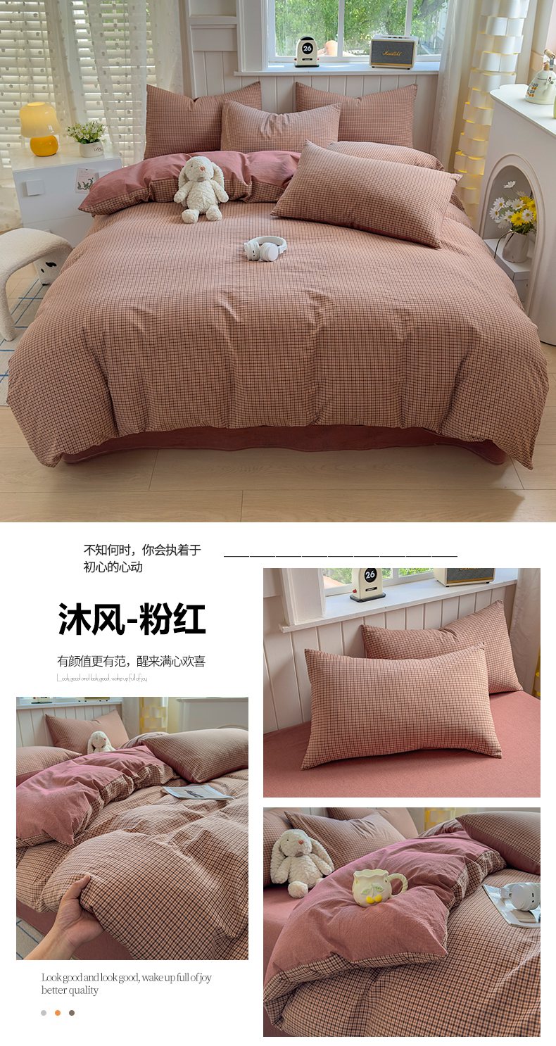 宜家坊 2025新款A类全棉色织水洗棉单枕套系列 纯色-藕粉