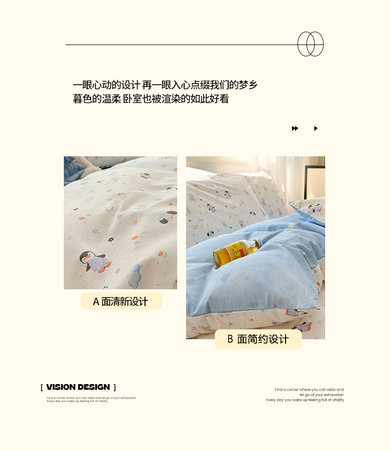 清雅福 2026春夏新品全棉13372小清新四件套系列 QQ乐园