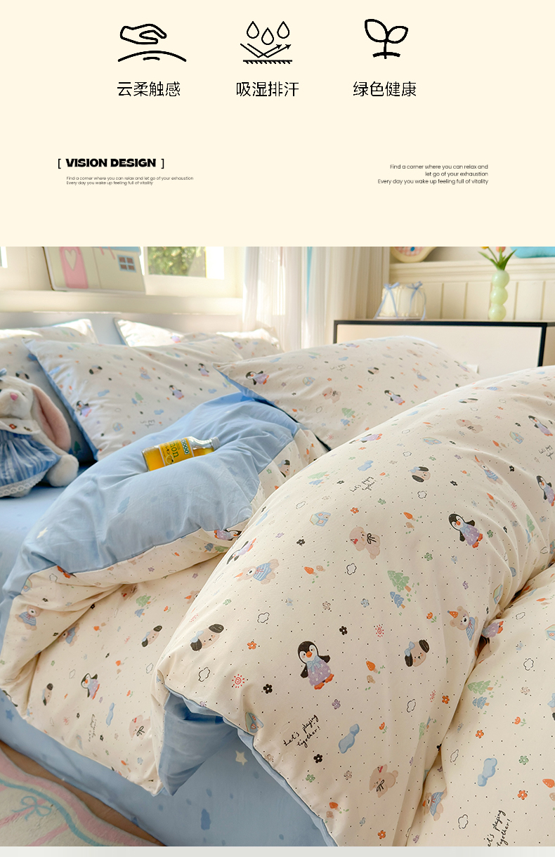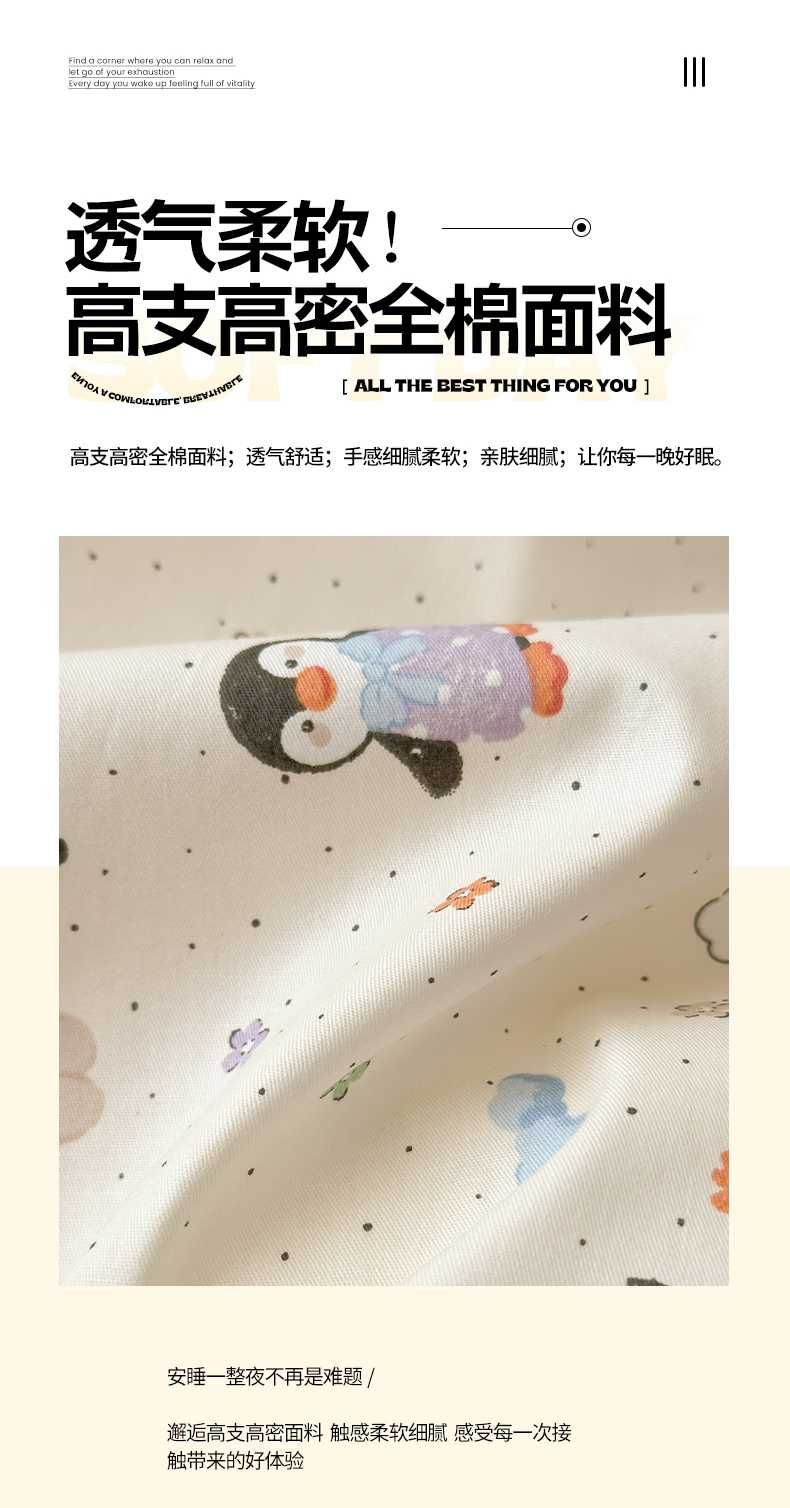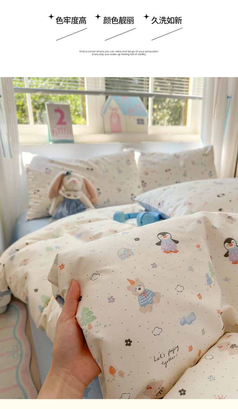 商品名称:清雅福 2026春夏新品全棉13372小清新四件套系列 QQ乐园