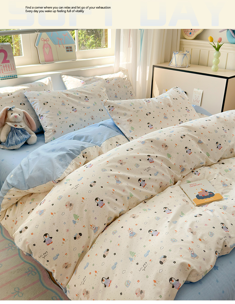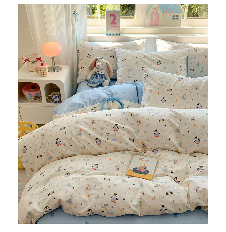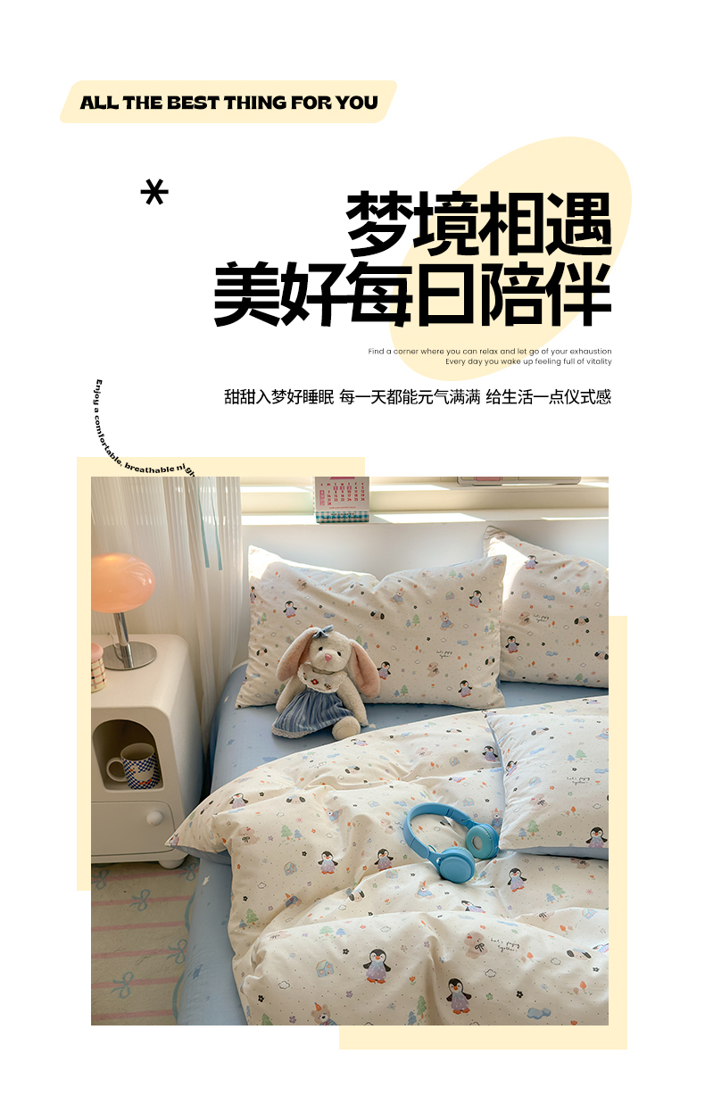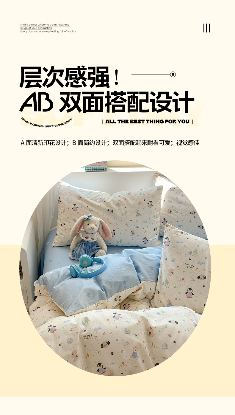 商品名称:清雅福 2026春夏新品全棉13372小清新四件套系列 QQ乐园