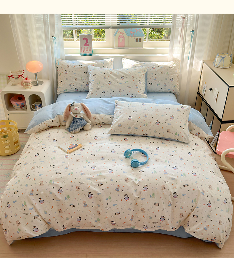 (总)清雅福 2026春夏新款INS小清新40支全棉13372四件套第一批,棒棒糖女孩,春之约定,点点小狗,动物聚会,豆丁小熊,粉心狗,富贵狗,果子象,含羞草,假日小狗