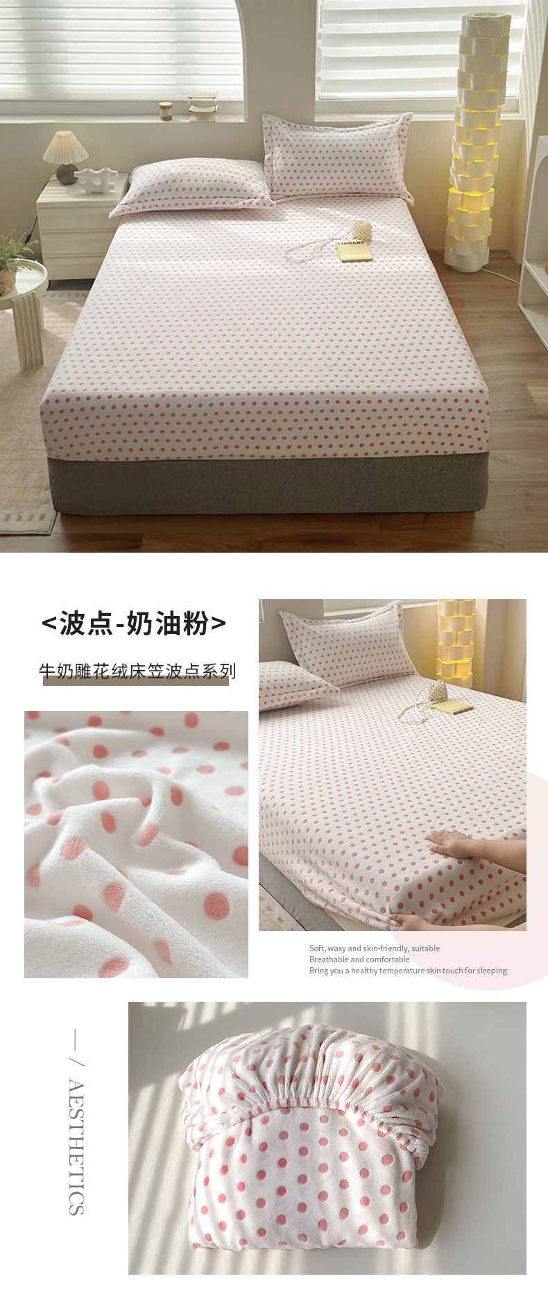 (总)寝柔家纺 2025新款冬季INS简约清新加厚牛奶雕花绒圆点波点单床笠,波点-冰川绿,波点-繁星蓝,波点-蜜桃粉,波点-奶油粉,波点-芋泥紫
