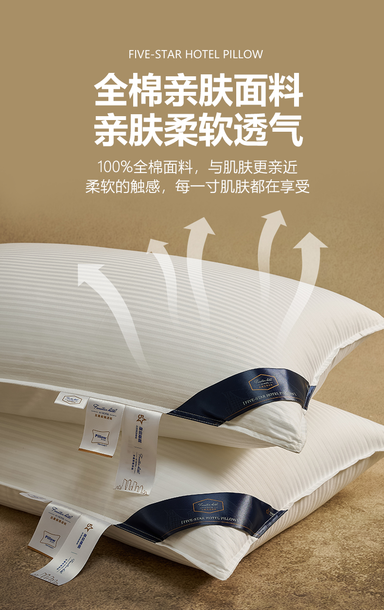 商品名称:乐可 2025新款尊享缎条酒店枕枕头枕芯 缎条酒店枕-白