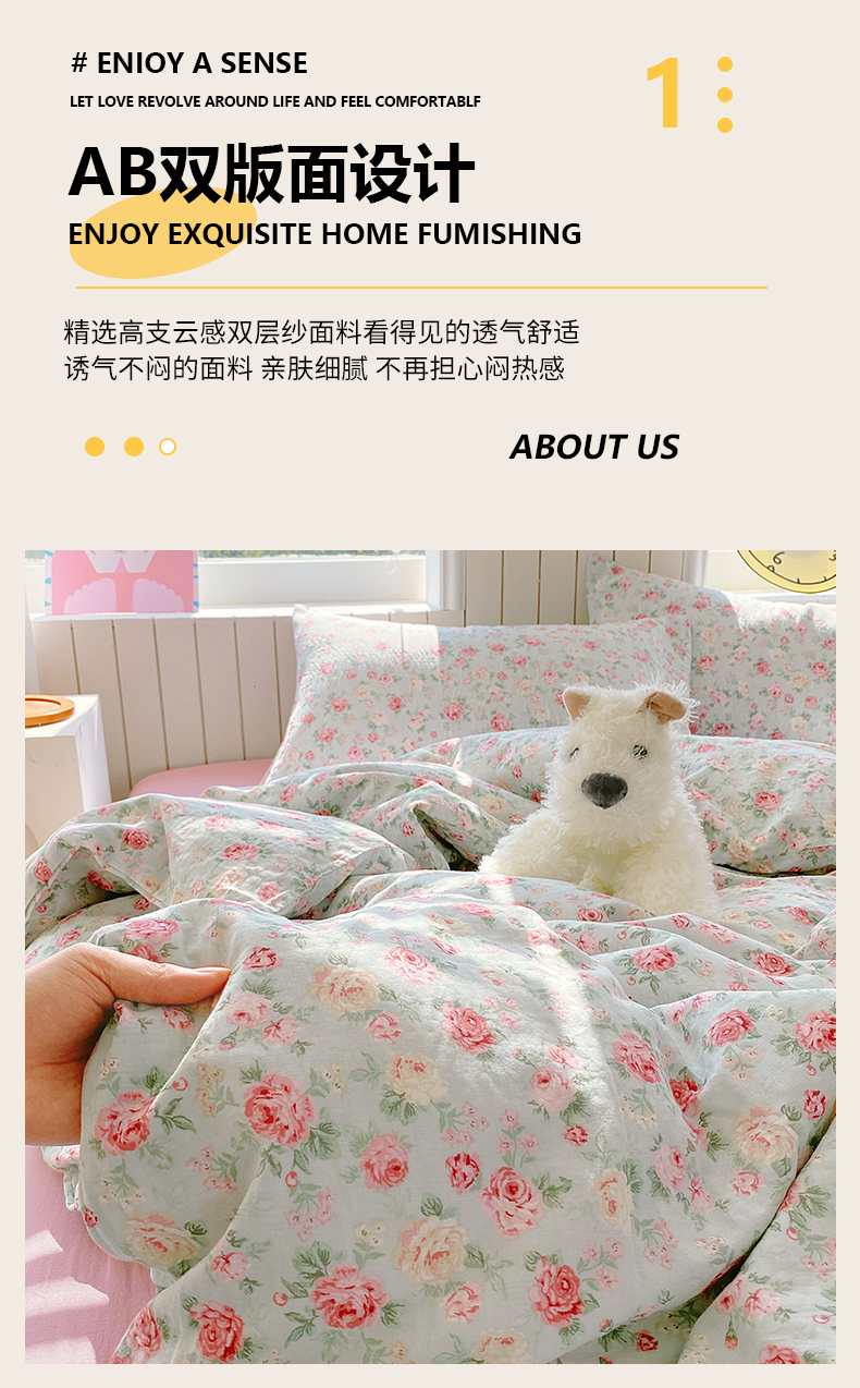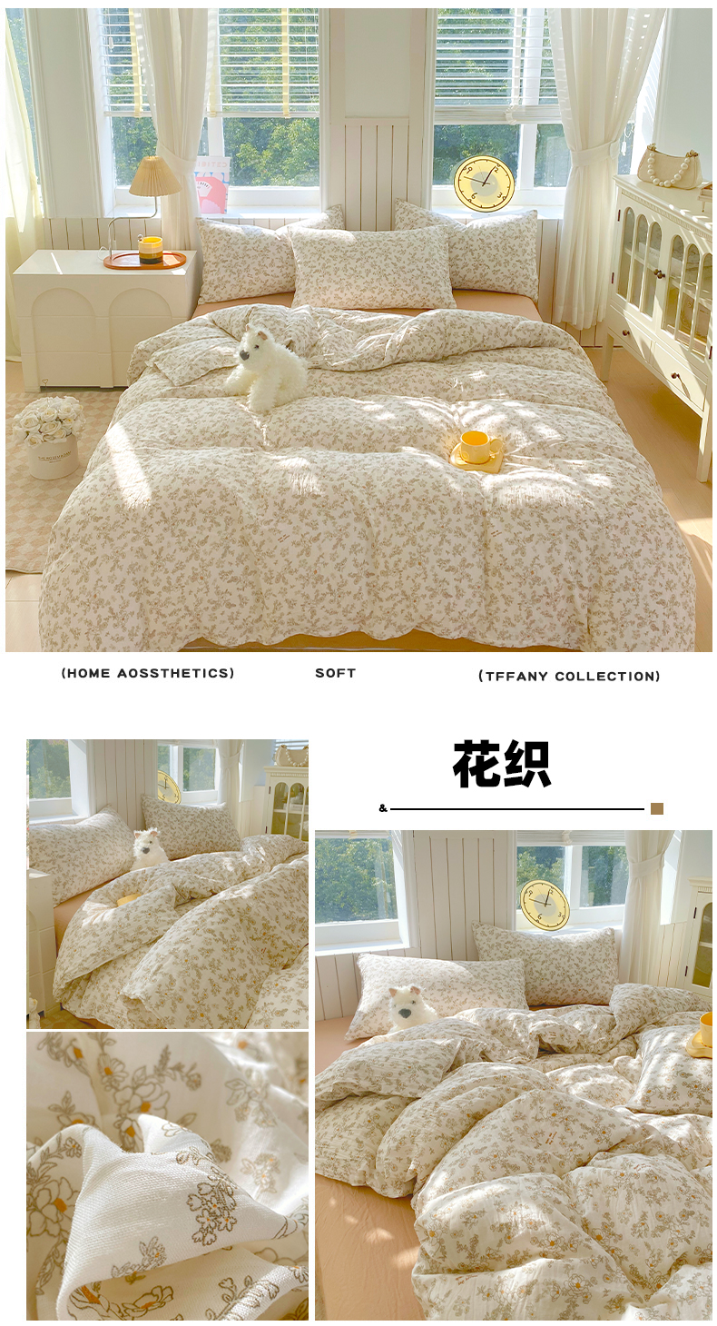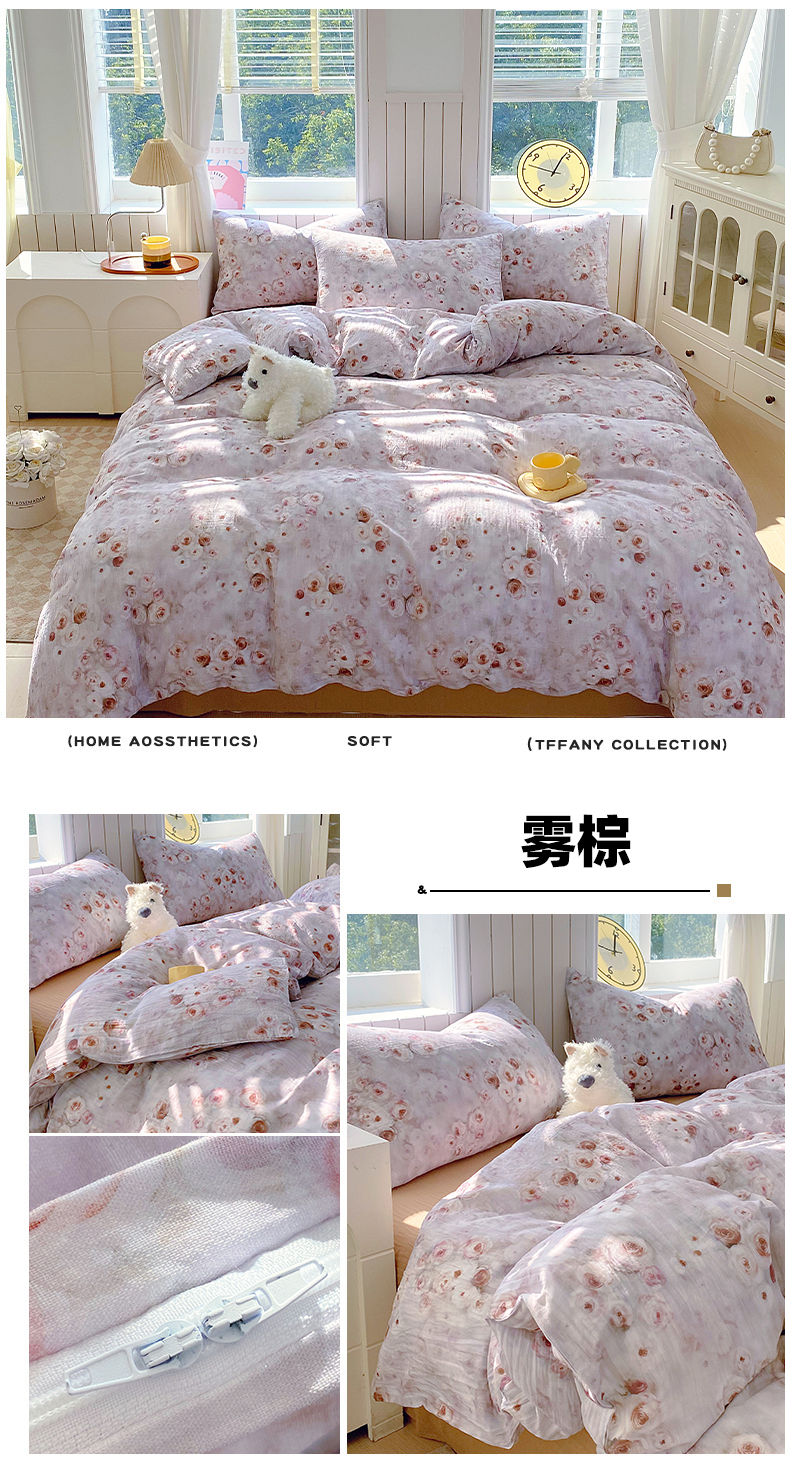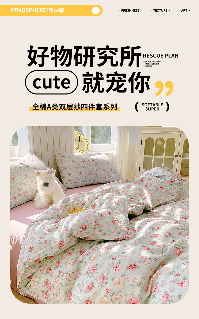 (总)春皖家纺 2026新款A类全棉有氧双层纱印花四件套单品系列-四件套