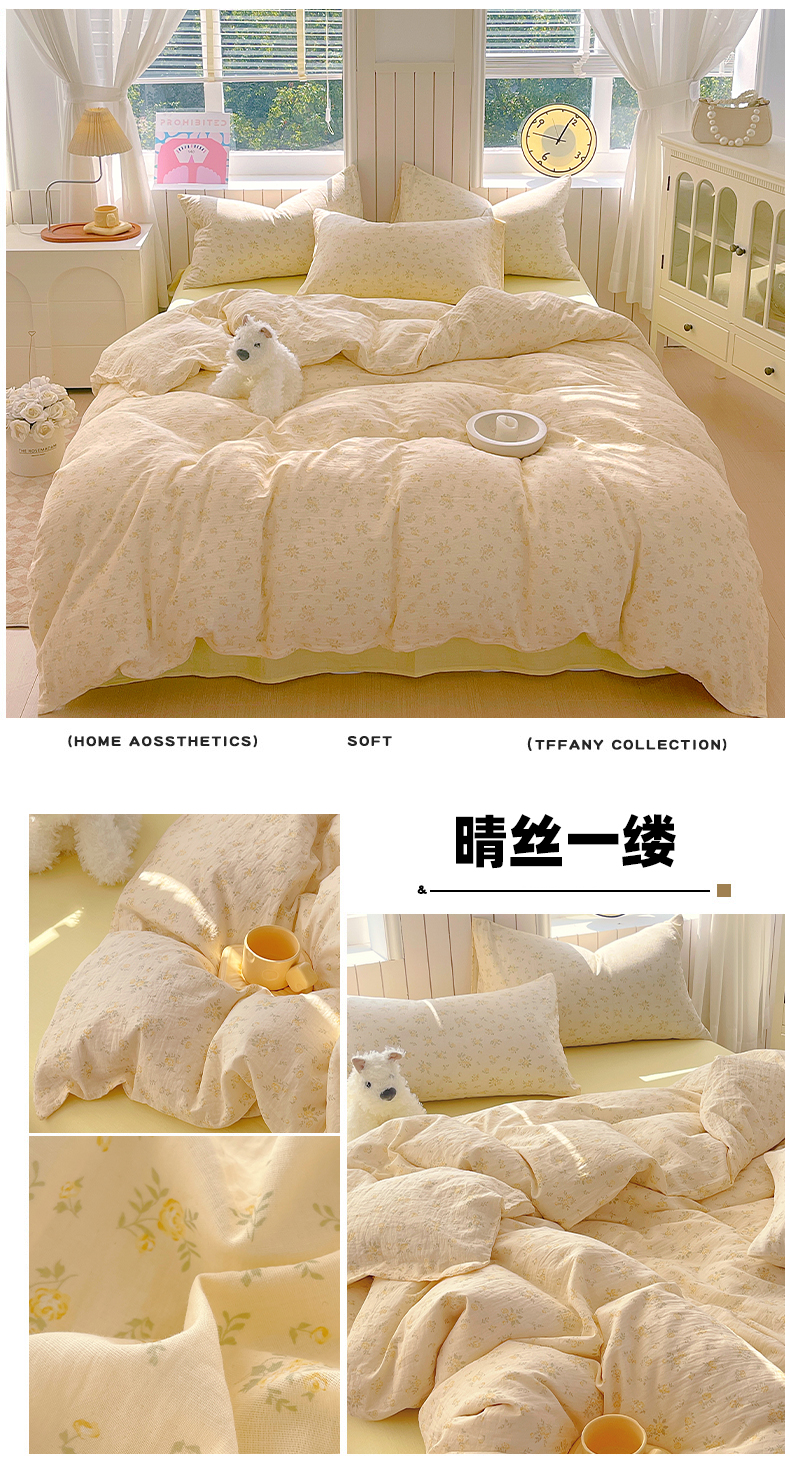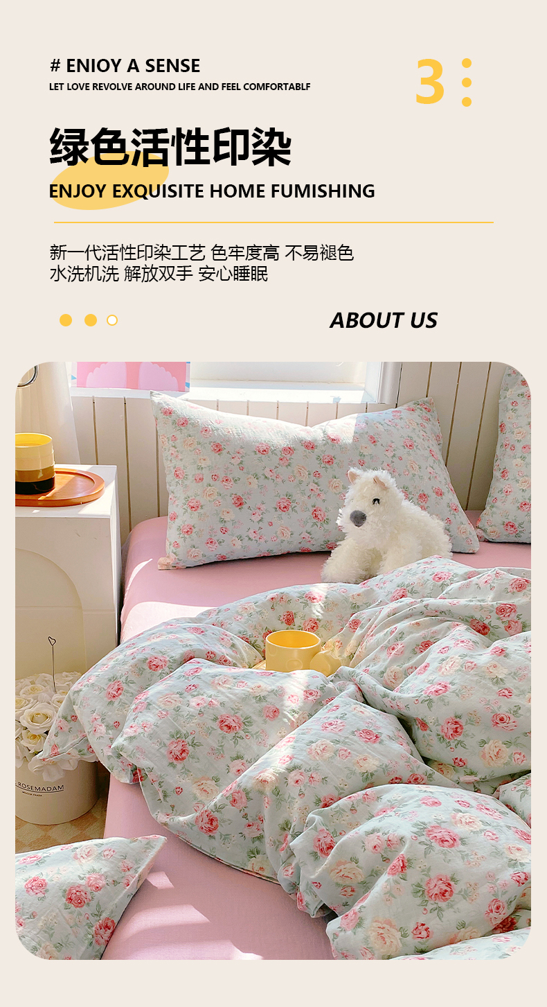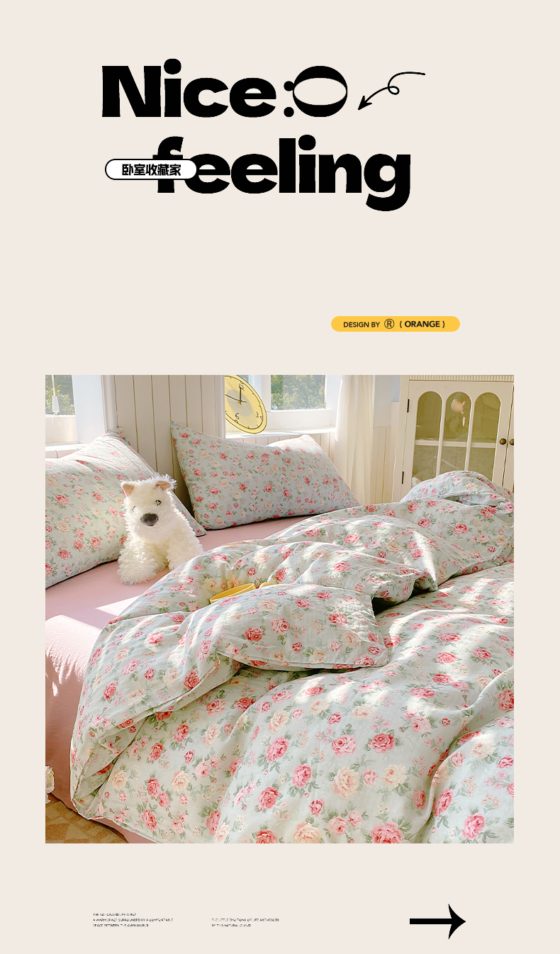 (总)春皖家纺 2026新款A类全棉有氧双层纱印花四件套单品系列-四件套