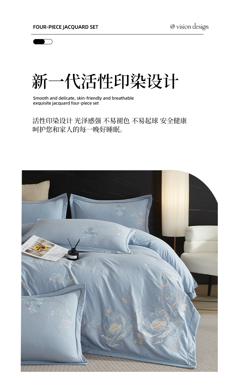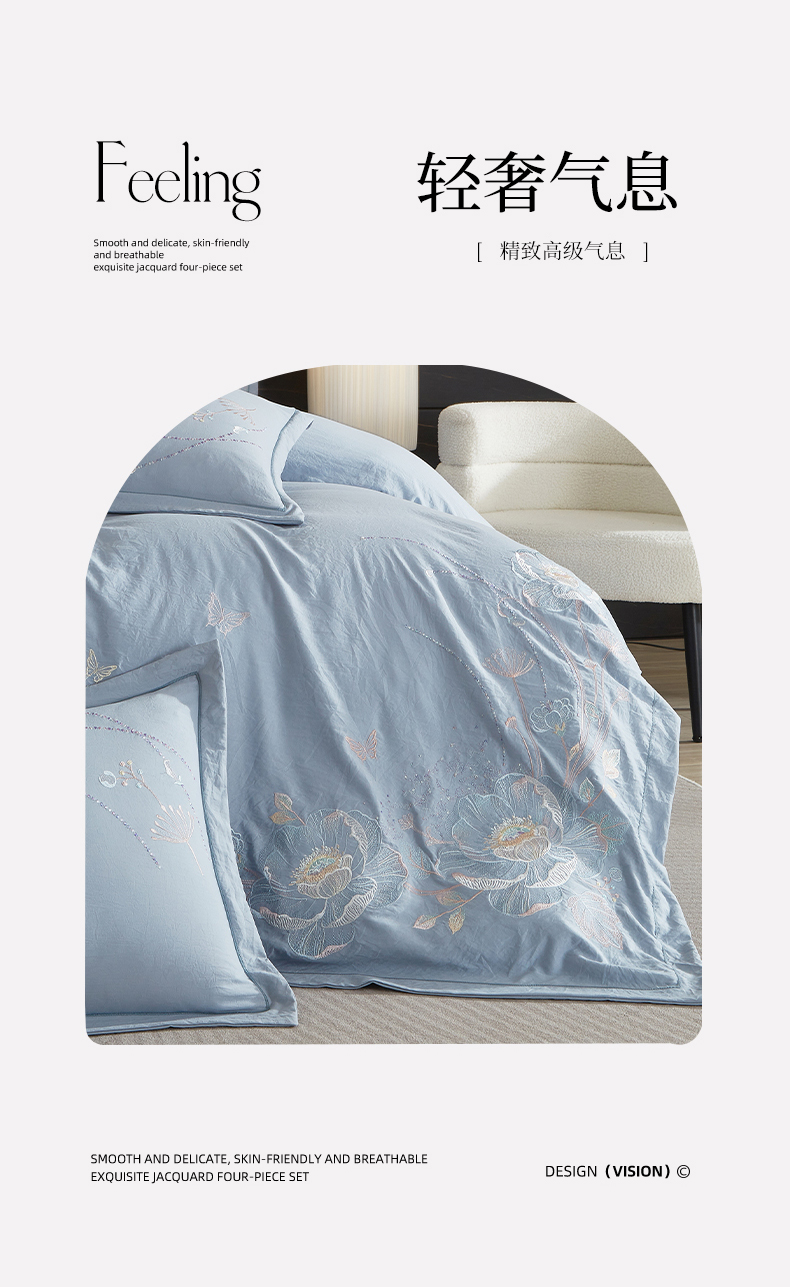 金纱玉纺家纺 2026新款轻奢工艺绣花四件套(提供买家秀) 繁花似锦-蓝