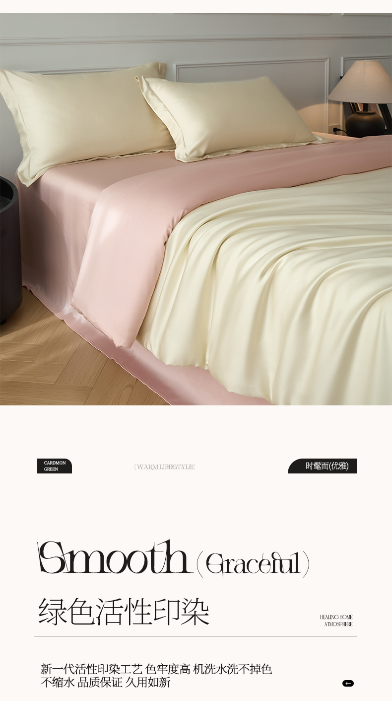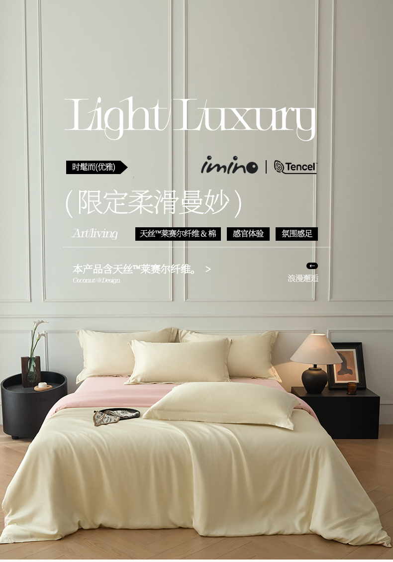 当前位置: 91家纺网 > 商品网购 > 床品套件 > 四件套 > 其它四件套 > 涵宸家纺 2026新款纯色天丝棉四件套-场景一 象牙白+玫瑰粉