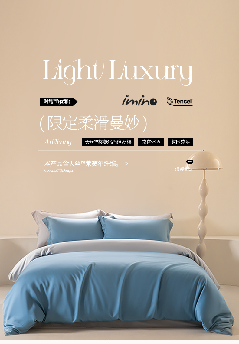 当前位置: 91家纺网 > 商品网购 > 床品套件 > 四件套 > 其它四件套 > 涵宸家纺 2026新款纯色天丝棉四件套-场景二 星耀兰+时尚灰