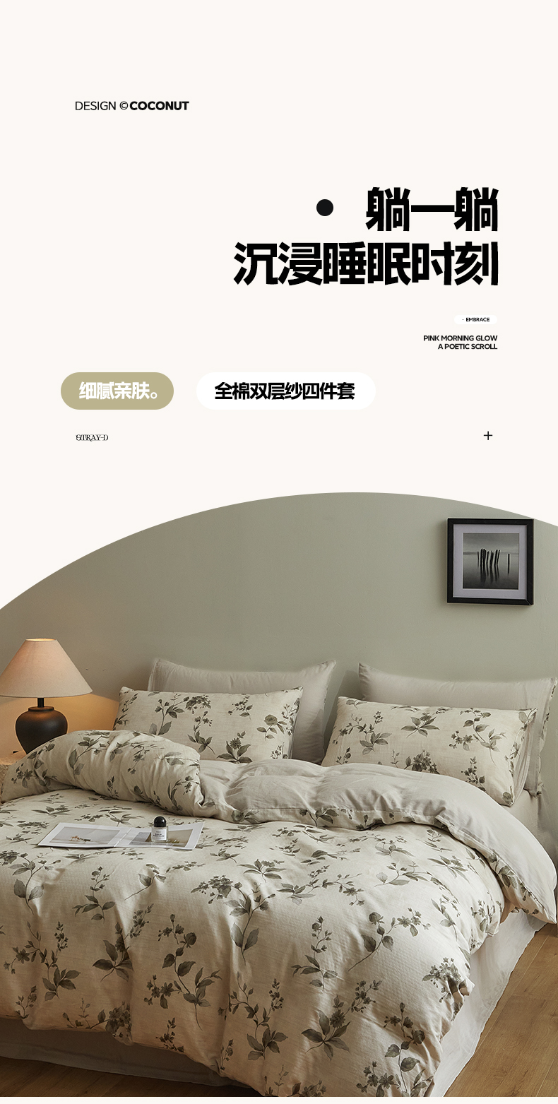 当前位置: 91家纺网 > 商品网购 > 床品套件 > 四件套 > 其它四件套 > 涵宸家纺 2026新款双层纱印花四件套 F晨光