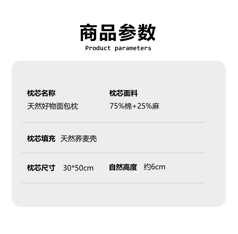 商品名称:(总)乐可 2026新款棉麻天然好物面包枕荞麦枕枕头枕芯