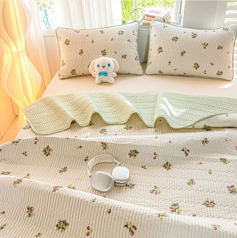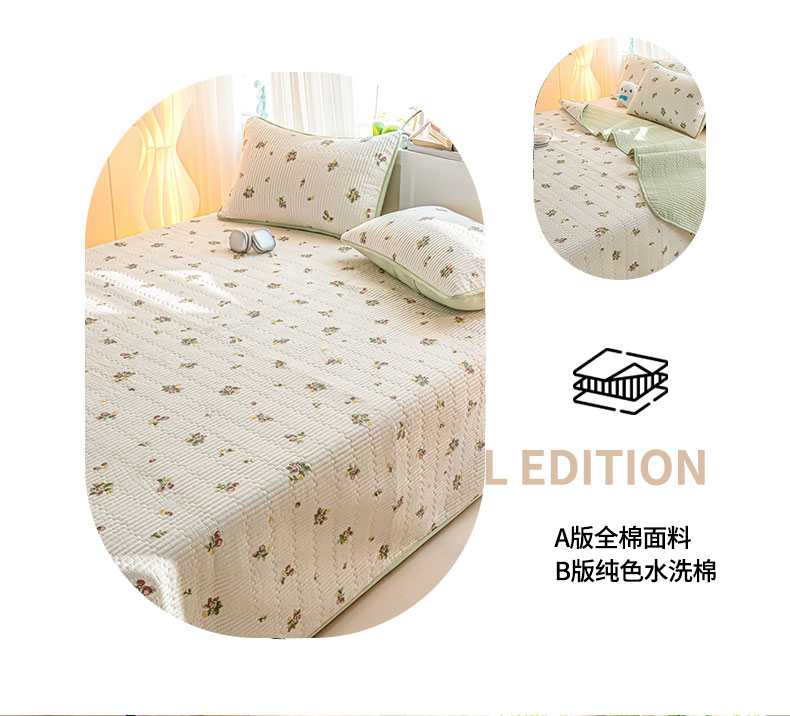 • 91家纺网 家纺一手货源 找家纺 X猫先生 2026新款全棉床盖小清新夹棉床单炕盖四季跑量款 小岛来信
