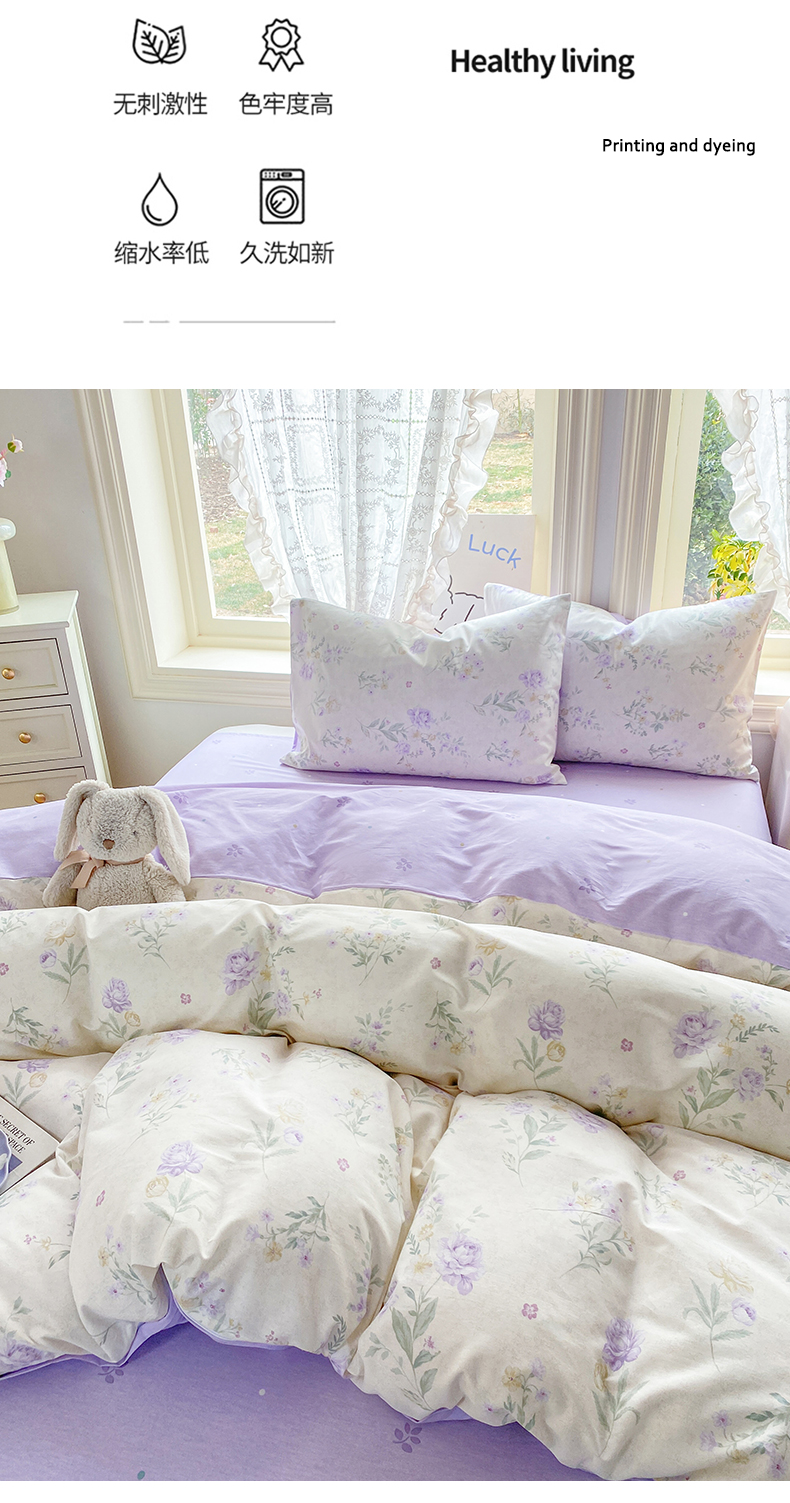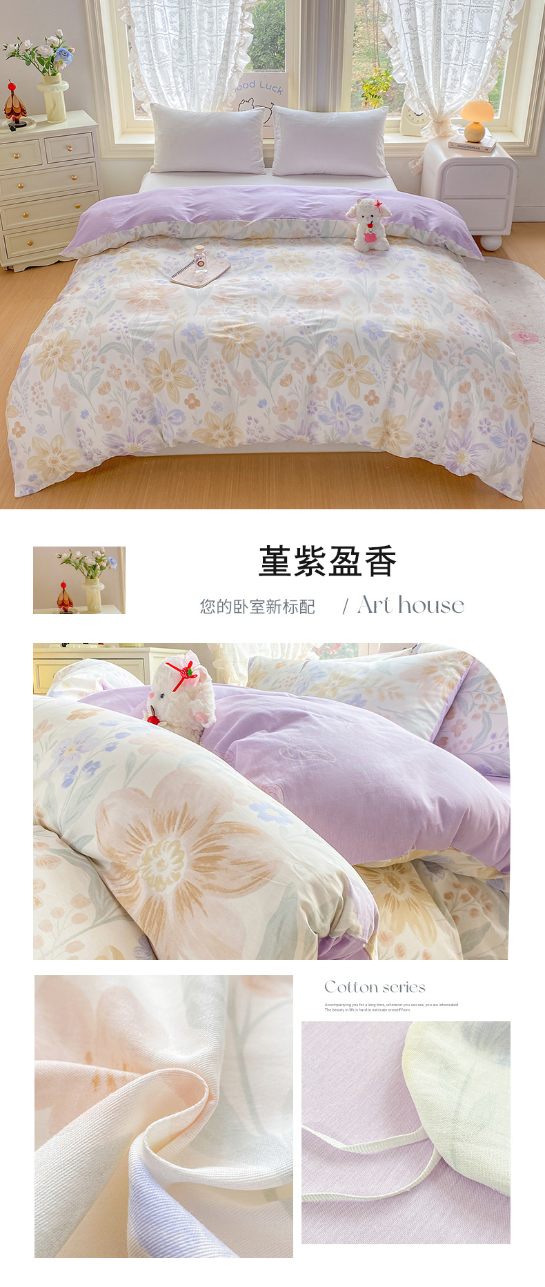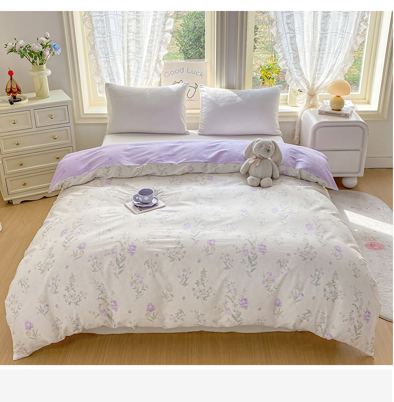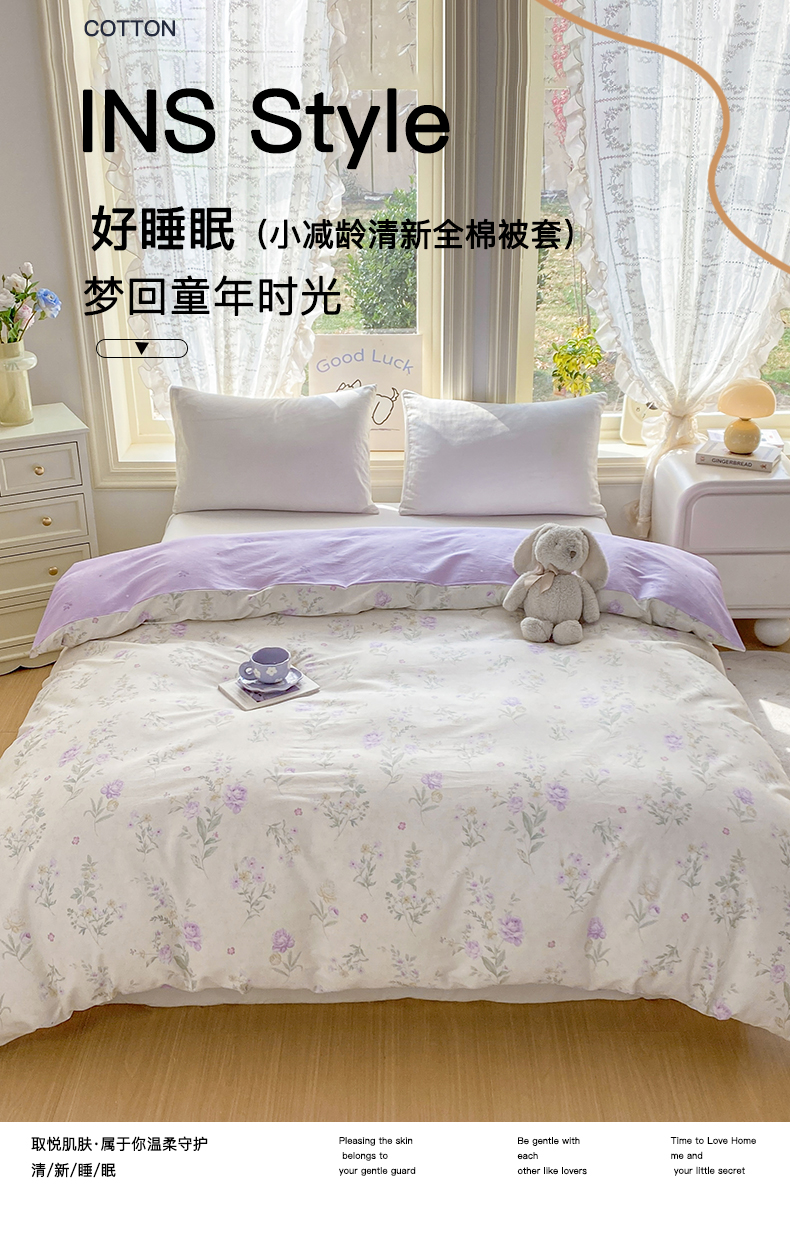 商品名称:黑马家居 2026新款13070全棉印花小清新卡通花卉单品被套系列 紫韶