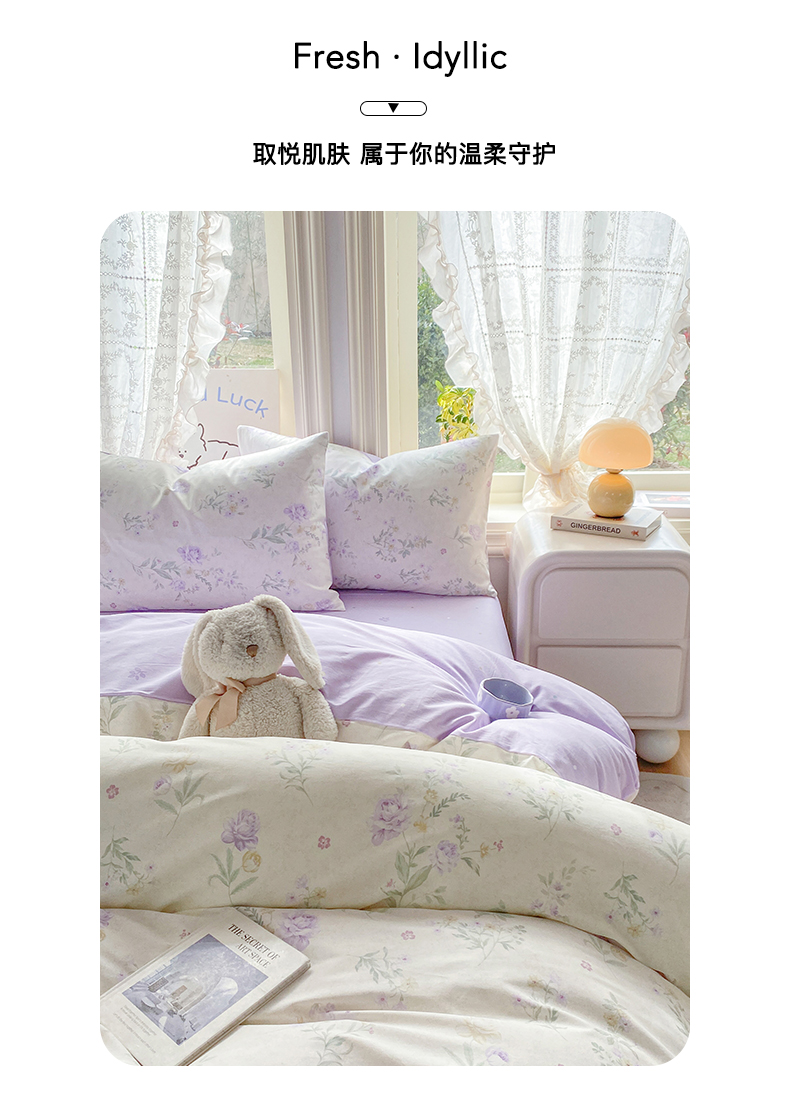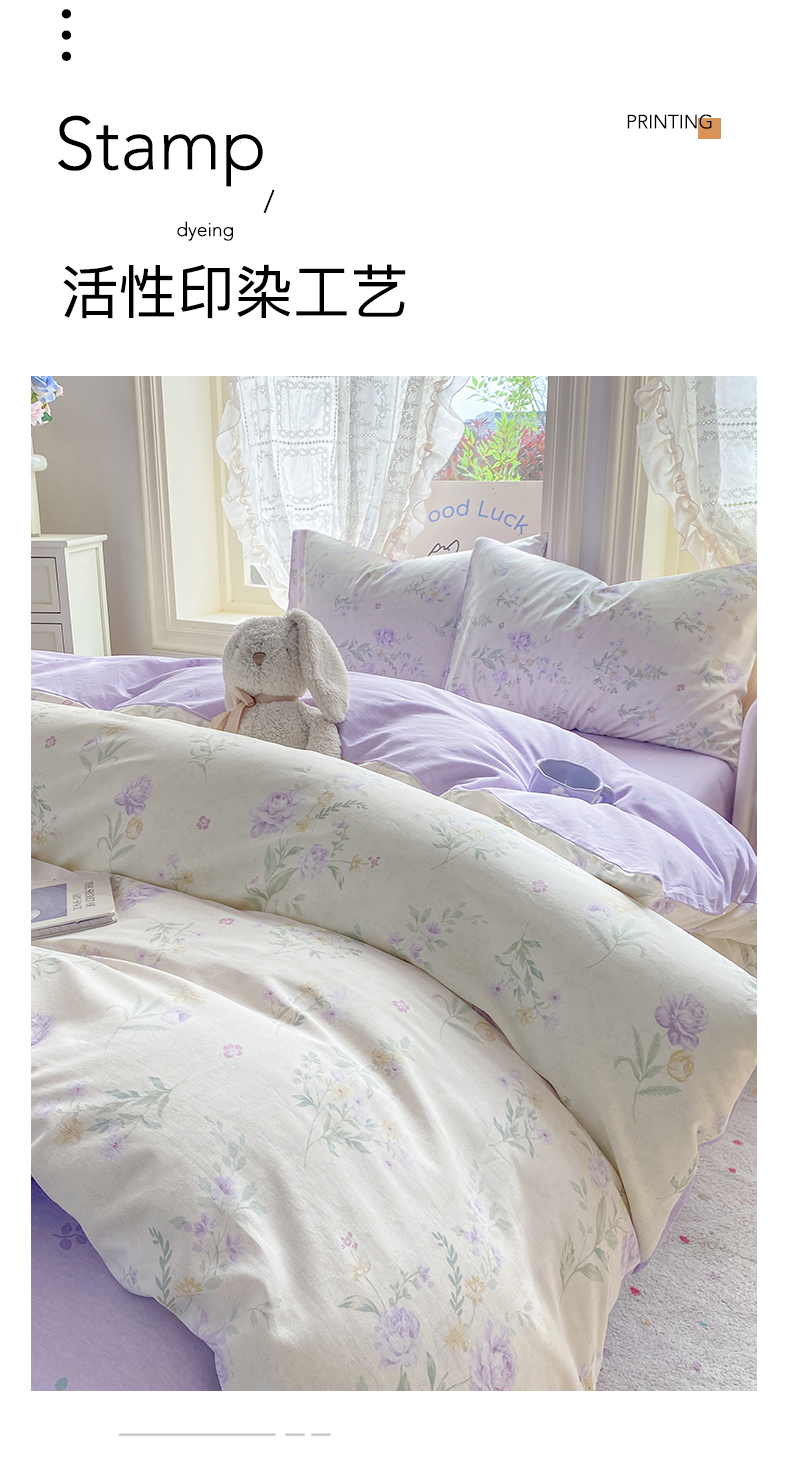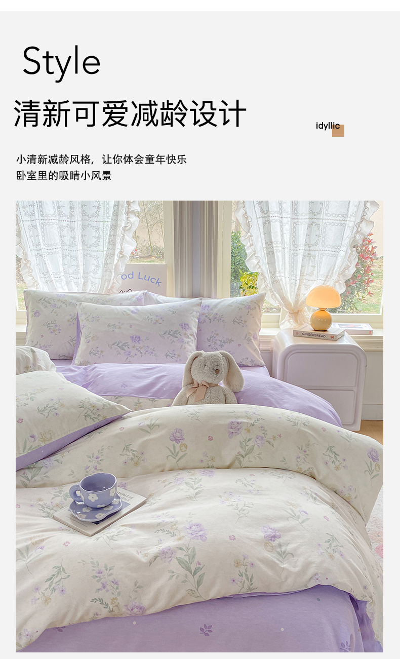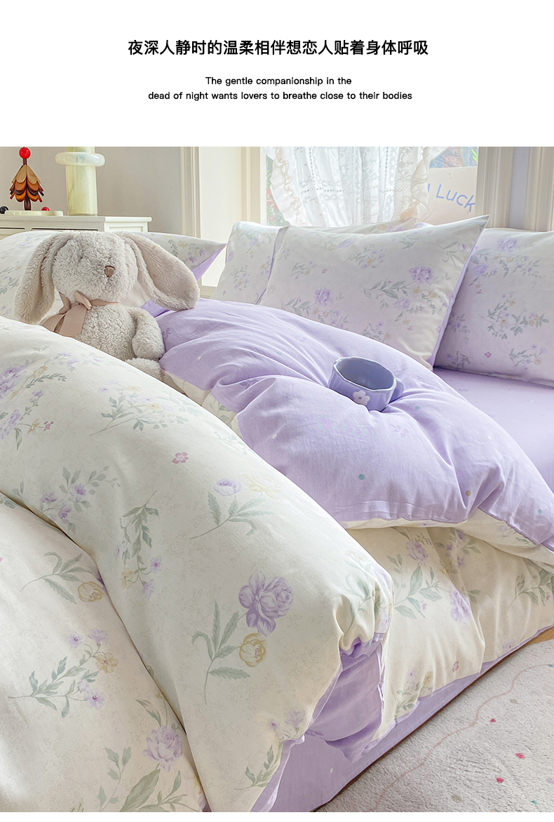 商品名称:黑马家居 2026新款13070全棉印花小清新卡通花卉单品被套系列 紫韶