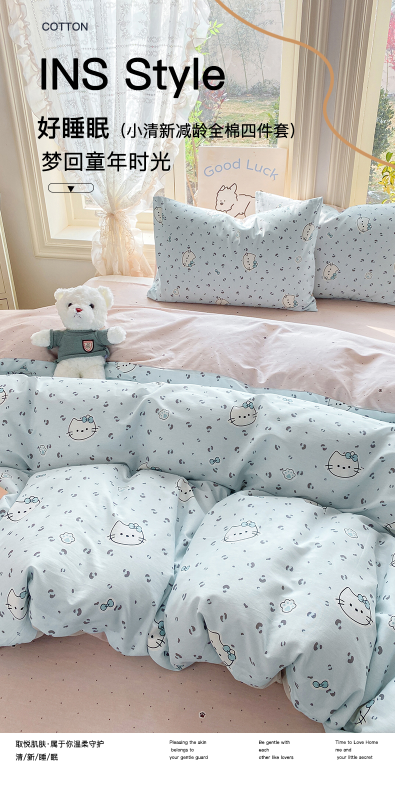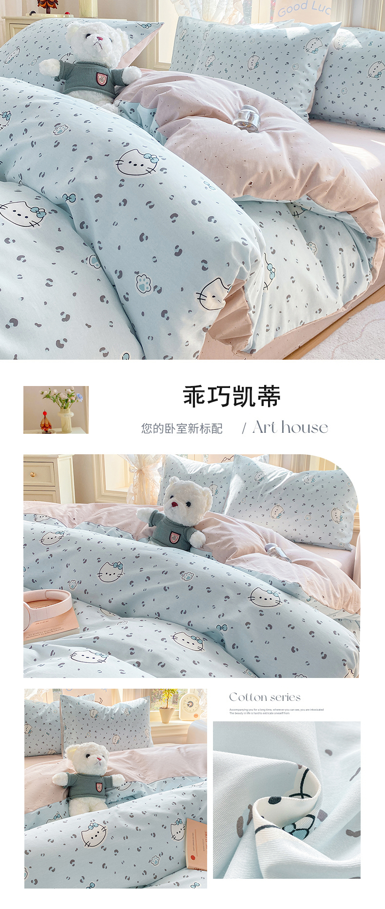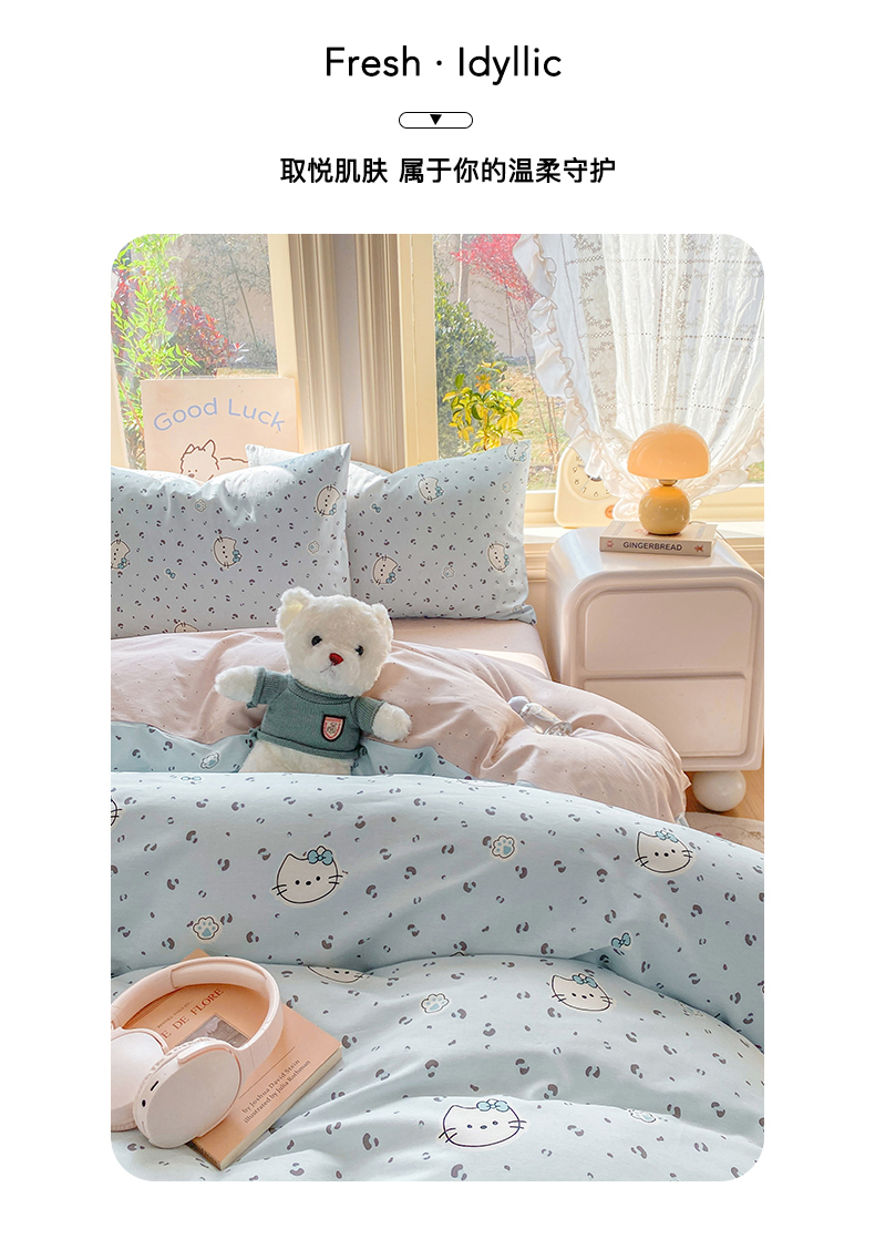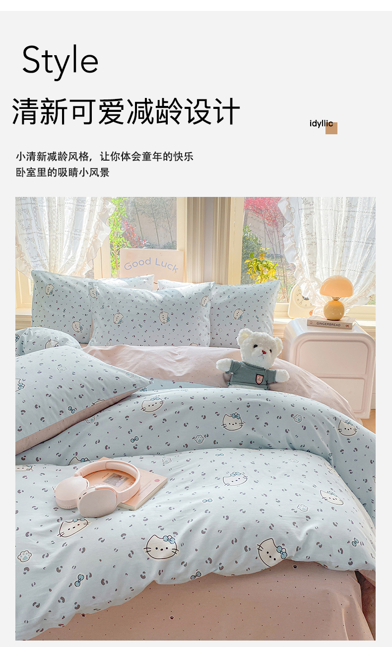 当前位置: 91家纺网 > 商品网购 > 床品套件 > 四件套 > 全棉普通四件套 > 黑马家居 2026新款13070全棉印花小清新卡通花卉四件套系列 乖巧凯蒂