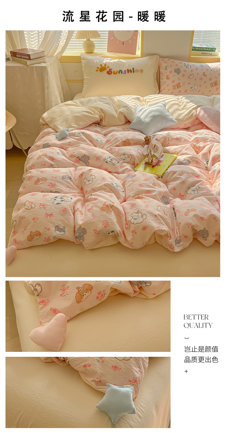 (总)子钦家纺 2026春夏新款提花泡芙棉可爱小清新手工爱心小星星系列床单床笠四件套-流星花园,流星花园-半塘主义,流星花园-抱抱兔,流星花园-蝴蝶结格子,流星花园-洛丽塔,流星花园-马年大发,流星花园-暖暖,流星花园-七彩爱心,流星花园-七彩波点,流星花园-七彩格,流星花园-生日熊,流星花园-苏格兰格,流星花园-碎花兔兔,流星花园-西高地,流行花园-趴趴狗